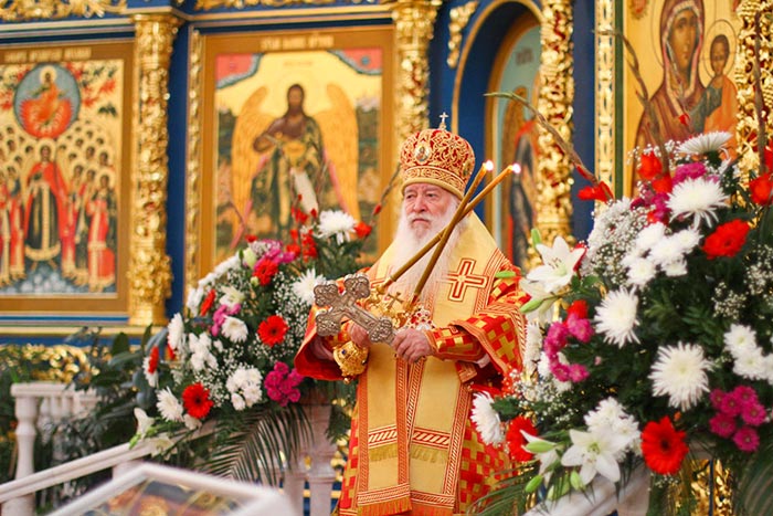 Митрополит Александр поздравил собравшихся с торжеством принесения в Астану великой святыни вселенского Православия – Честного Древа Креста Господня и обратился к присутствующим с проповедью о подвиге новомучеников и исповедников Казахстанских.