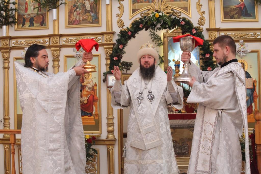 Управляющий Усть-Каменогорской и Семипалатинской епархией Преосвященнейший епископ Амфилохий совершил Божественную литургию святителя Иоанна Златоуста и чин великого освящения воды кафедральном соборе во имя святого апостола Андрея Первозванного города Усть-Каменогорска.