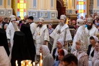 «Сегодня мы слышали удивительное обещание Господа, которое утешает нас, ободряет и дает силы человеческому духу. Эти слова Спасителя запечатлены для всех поколений верующих в святом Евангелии: «Я с вами во все дни до скончания века». Что может быть радостнее этой великой истины? Господь вечно живет с нами, Он постоянно пребывает в Своей Церкви, которую основал. Он дает Себя православным христианам в Святых Таинствах, участвуя в которых, человек реальным, действенным образом приобщается Божественной благодати. Особо это ощущается, когда после искреннего покаяния мы со смирением и сокрушением сердечным приступаем к Чаше Жизни и причащаемся Тела и Крови Господних. Именно в эти моменты мы трепетно переживаем самое близкое участие Бога в нашей судьбе, обретаем собственный духовный опыт, укрепляемся в вере и в избытке получаем радость от того, что Господь с нами. Действительно, Христос в Церкви Своей, которую Он основал, которую стяжал Кровью Своей, и которую «врата ада не одолеют». Господь утешает нас, что по вознесении на Небеса, Он всегда пребывает в Своей Церкви, спасает нас от всякого зла и возводит от земли на Небо». Из проповеди митрополита Александра.