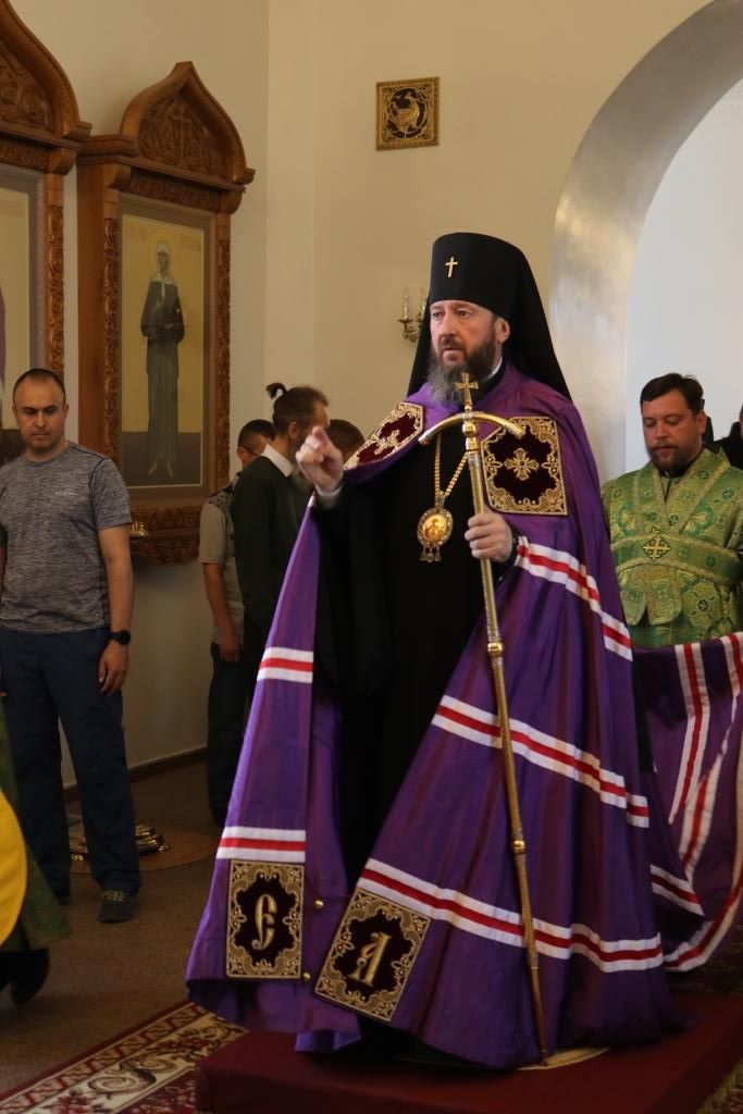 Архипастырю сослужили: ключарь Андреевского кафедрального собора иеромонах Никодим (Авдеев), клирики собора иерей Алексий Клепиков, иеромонах Силуан (Магилев), иерей Роман Подрезов, иеромонах Мефодий (Шевчук), протодиакон Андрей Дудник.
