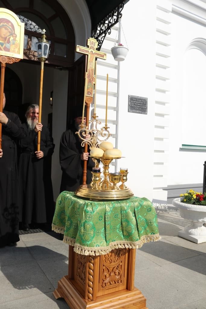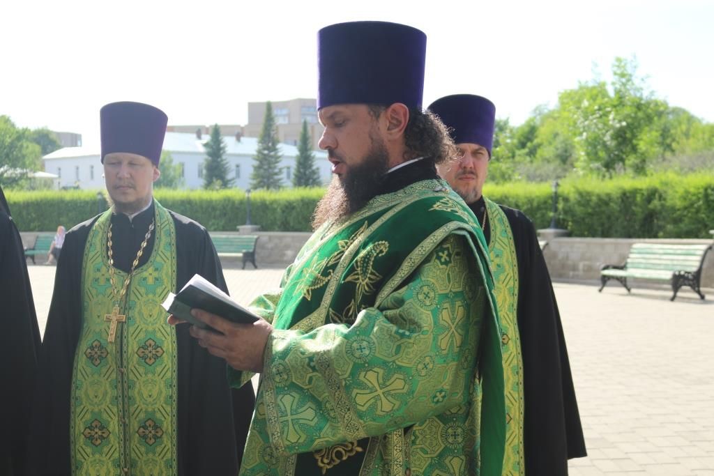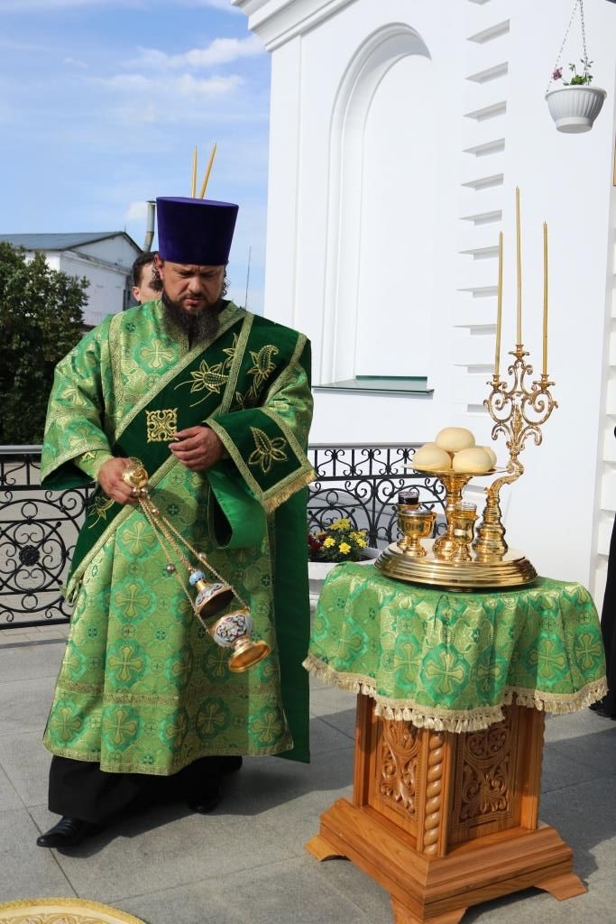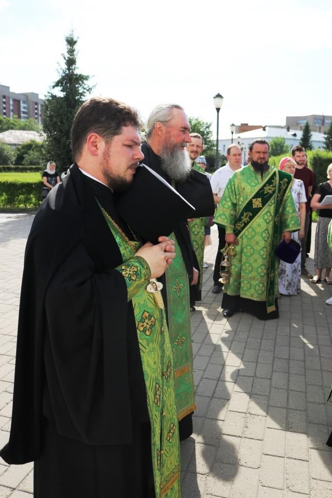 Во время литии был совершен крестный ход вокруг Свято-Троицкого собора. После прочтения евангельского зачала владыка архиепископ помазал духовенство и прихожан освященным елеем.