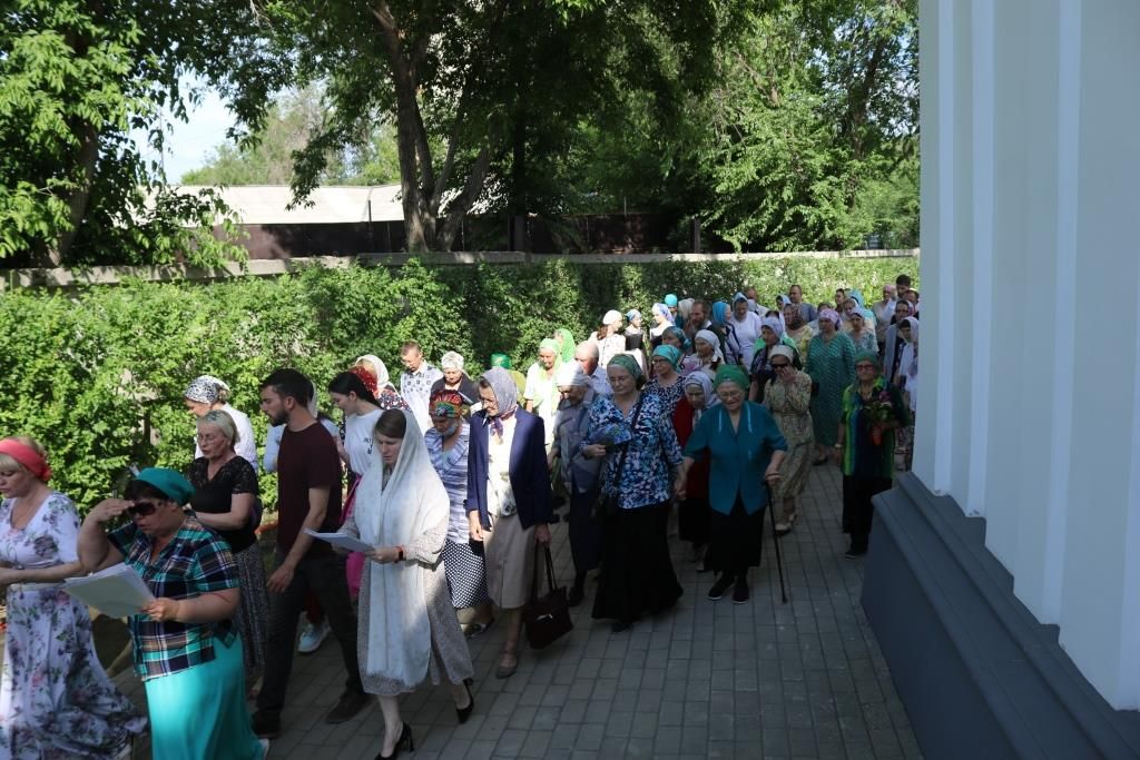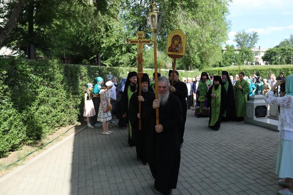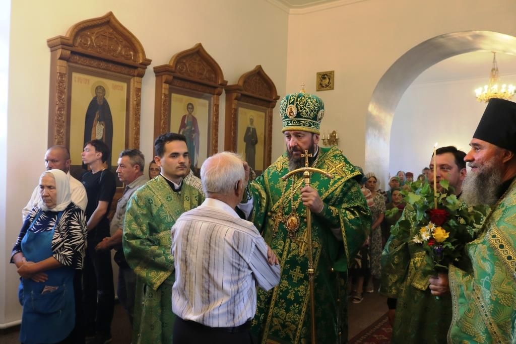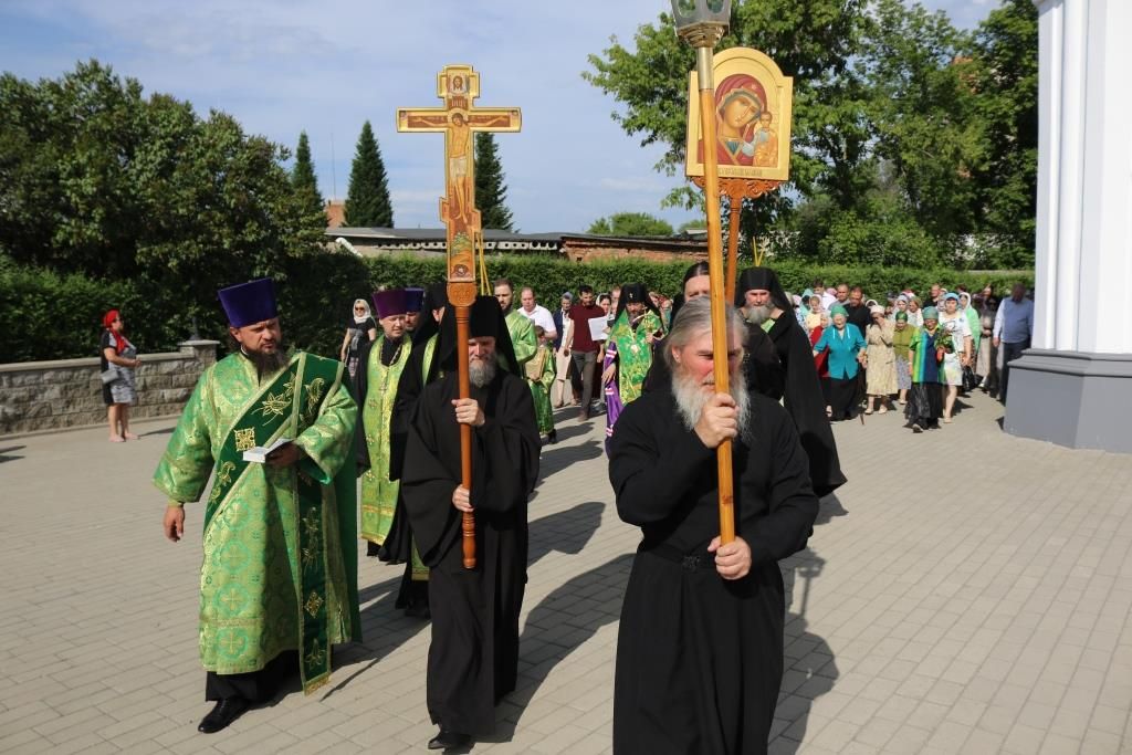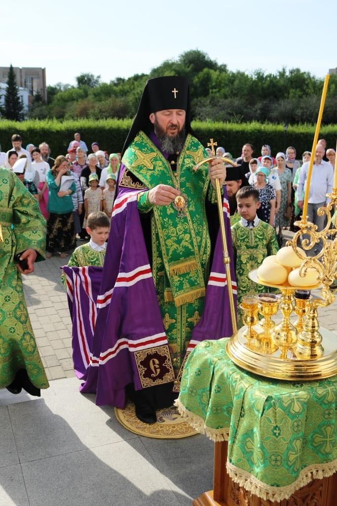 Во время литии был совершен крестный ход вокруг Свято-Троицкого собора. После прочтения евангельского зачала владыка архиепископ помазал духовенство и прихожан освященным елеем.