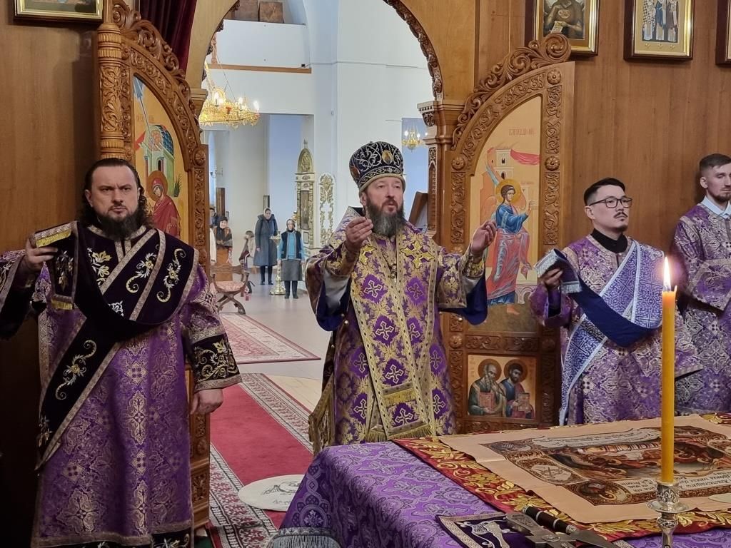 Богослужебные песнопения исполнял хор кафедрального собора (регент Н. Романцова). В субботу в храме молились и причащались Святых Таин прихожане кафедрального собора, сотрудники епархиального управления и братия Свято-Троицкой обители. Проповедь перед причастием мирян произнёс священник Константин Дьяков.
