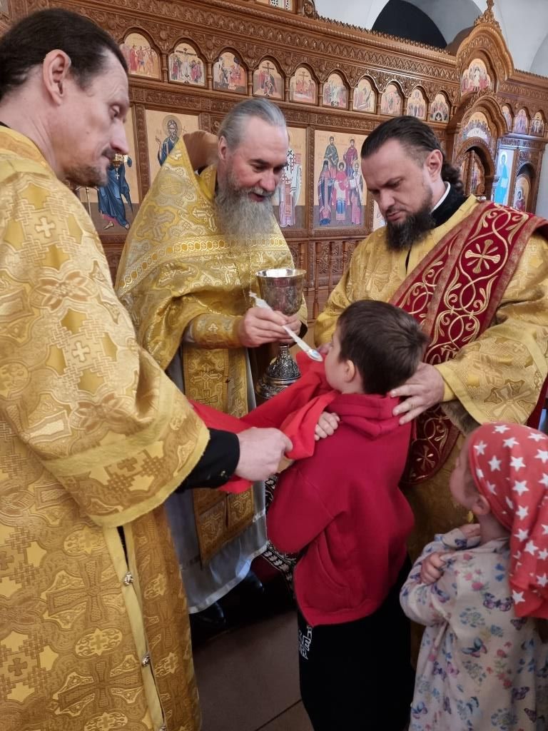 Перед причастием мирян проповедовал священник Виталий Адаменков. После завершения богослужения Владыка Амфилохий обратился к прихожанам со словами святительского поучения.