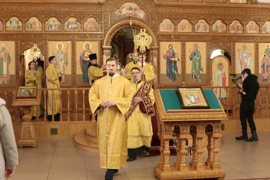 Перед причастием мирян проповедовал священник Константин Дьяков. После окончания воскресного богослужения Владыка архиепископ Амфилохий поздравил всех собравшихся с праздником и обратился к прихожанам со словами святительского наставления.