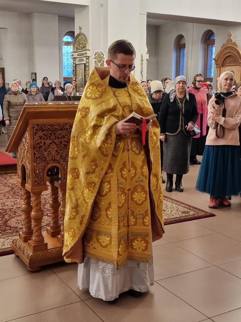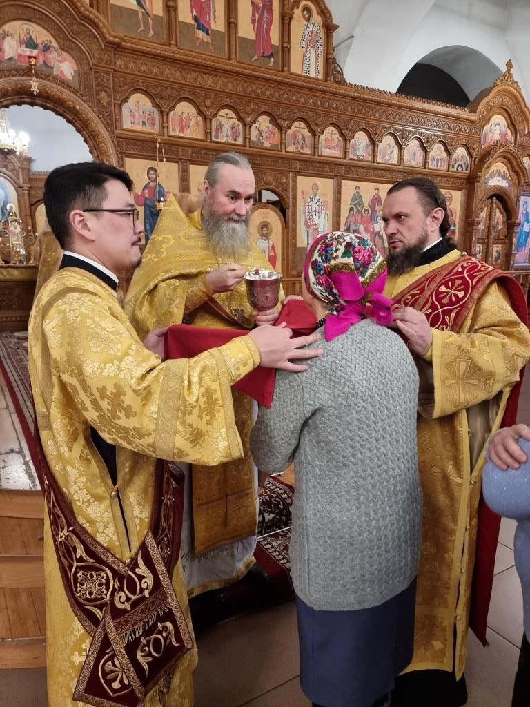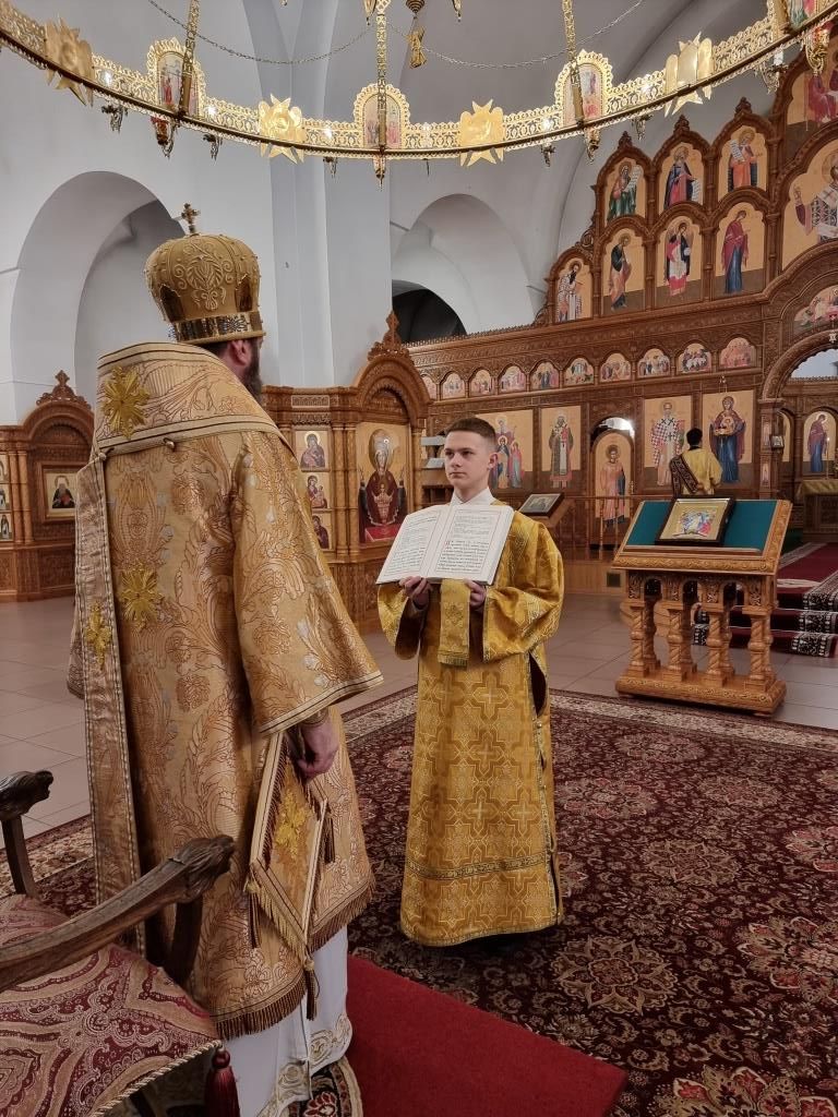 Архипастырю сослужили: ключарь кафедрального собора иеромонах Никодим (Авдеев), клирики кафедрального собора иерей Роман Подрезов и иерей Константин Дьяков, секретарь епархии диакон Илия Кван, протодиакон Андрей Дудник.