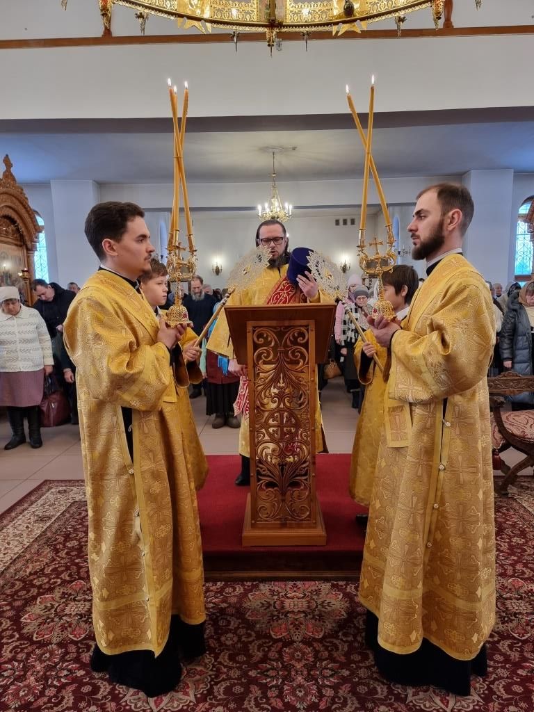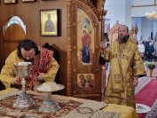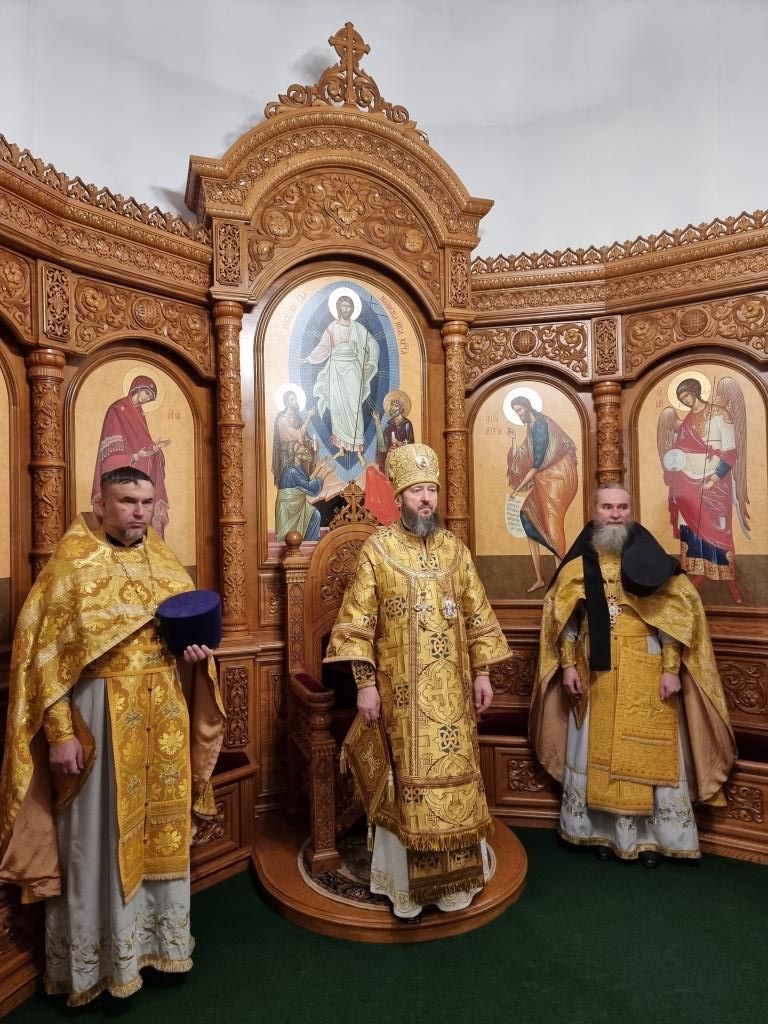 После торжественной встречи святыни Высокопреосвященнейший архиепископ Усть-Каменогорский и Семипалатинский Амфилохий возглавил служение Божественной Литургии святителя Иоанна Златоуста в главном храме епархии. Его Высокопреосвященству сослужили: ключарь кафедрального собора иеромонах Никодим (Авдеев), клирик кафедрального собора иерей Виталий Адаменков, секретарь епархии диакон Илия Кван, протодиакон Андрей Дудник.