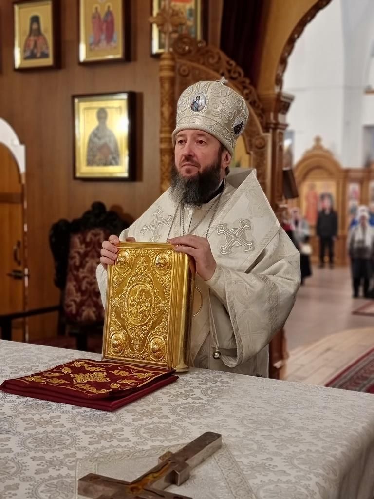 Владыке архиепископу сослужили: ключарь кафедрального собора иеромонах Никодим (Авдеев), иерей Константин Дьяков, секретарь епархии диакон Илия Кван, протодиакон Андрей Дудник.