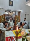 После проповеди Его Высокопреосвященство призвал Божие благословение на паству и окропил прихожан великой агиасмой. Богослужение завершилось братской трапезой.