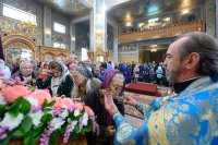 После славления митрополит Александр поздравил архипастырей, матушку игумению, духовенство и прихожан с престольным праздником, воскресным днем, открывшим собой подготовительный период к Великому посту, и обратился к собравшимся со словом поучения.