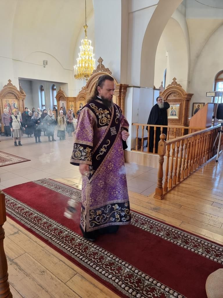 Песнопения Божественной Литургии исполнял хор кафедрального собора под управлением регента Н. Романцовой. За богослужением молились и причащались Святых Христовых Таин насельники Свято-Троицкого мужского монастыря города Усть-Каменогорска, сотрудники епархиального управления и прихожане кафедрального собора. Проповедь перед причастием мирян произнёс священник Константин Дьяков.