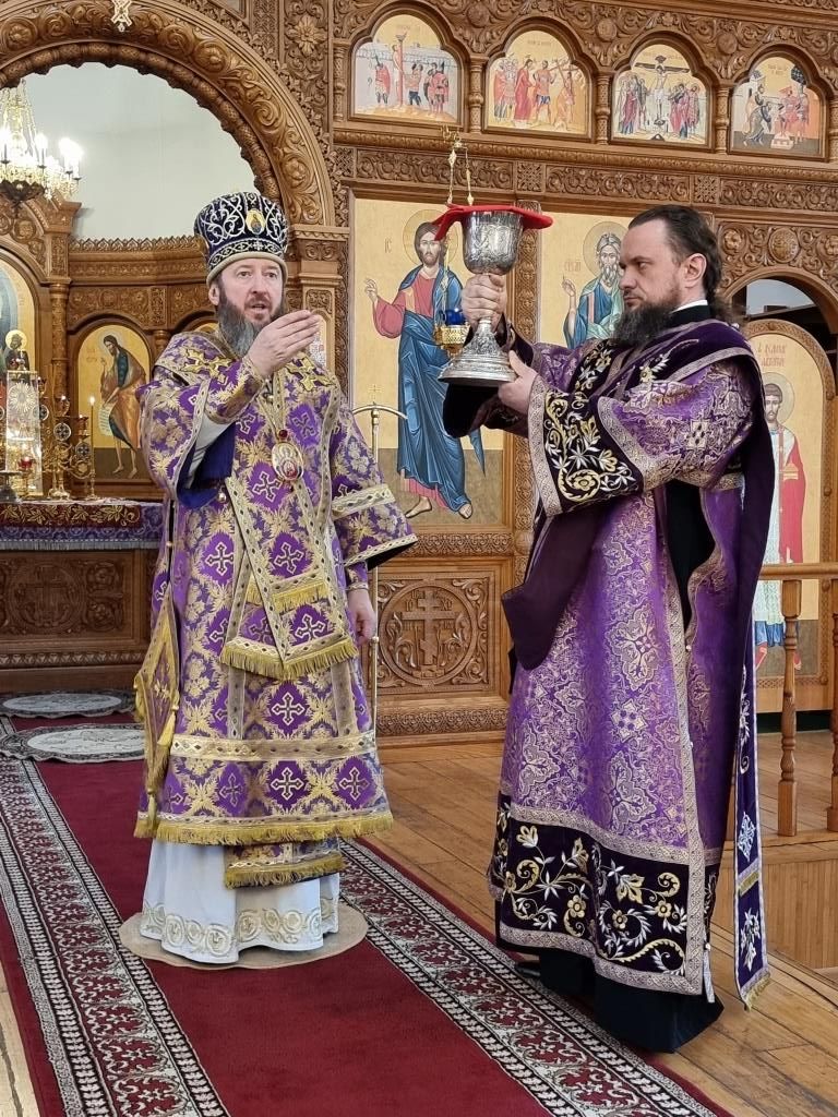 Архиепископ Усть-Каменогорский и Семипалатинский Амфилохий возглавил служение Божественной Литургии святителя Иоанна Златоуста в Свято-Андреевском кафедральном соборе города Усть-Каменогорска. Его Высокопреосвященству сослужили: ключарь кафедрального собора иеромонах Никодим (Авдеев), клирики собора иерей Виталий Адаменков и иерей Константин Дьяков, протодиакон Андрей Дудник.
