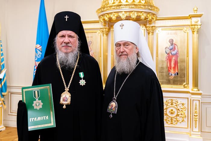 Владыка митрополит и епископат поздравили архиепископа Севастиана с 35-летием священнической хиротонии и архиепископа Владимира с 55-летием со дня рождения. За понесенные церковные труды на Казахстанской земле Преосвященные архипастыри были удостоены ордена Митрополичьего округа «Ынталы Қызмет Үшiн» (За Усердное Служение).