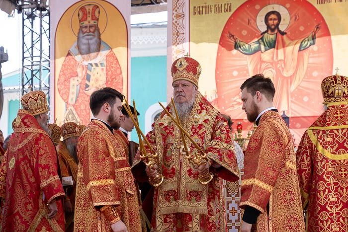 Далее Глава Казахстанского Митрополичьего округа осенил молящихся святыней, после чего сердечно поблагодарил гостей-иерархов, священнослужителей и всех участников торжеств за общую молитву и поздравил собравшихся с сугубыми торжествами, духовно украсившими пасхальные дни, – 25-летием учреждения Астанайской и Алма-Атинской епархии и принесением в Алма-Ату чудотворной иконы Богородицы.