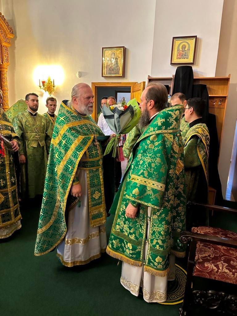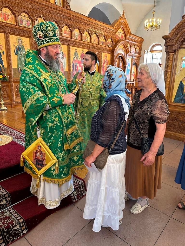 Разделить радость евхаристического общения с архиепископом Амфилохием прибыли клирики со всех приходов епархии. Так же за богослужением молились: настоятельница Знаменско-Абалацкого женского монастыря города Семипалатинска игумения Марионилла (Помельникова), насельники Свято-Троицкого мужского монастыря города Усть-Каменогорска, сотрудники епархиального управления, прихожане городских храмов и прибывшие с духовенством паломники. Песнопения Божественной Литургии и праздника Святого Духа исполнял хор под управлением регента Н. Романцовой.