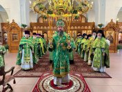 За богослужением возносились молитвы о здравии и спасении Святейшего Патриарха Московского и всея Руси Кирилла, Главы Православной Церкви Казахстана митрополита Астанайского и Казахстанского Александра, архиепископа Амфилохия; о мире и процветании Казахстанской земли, освященной подвигами многих новомучеников и исповедников.