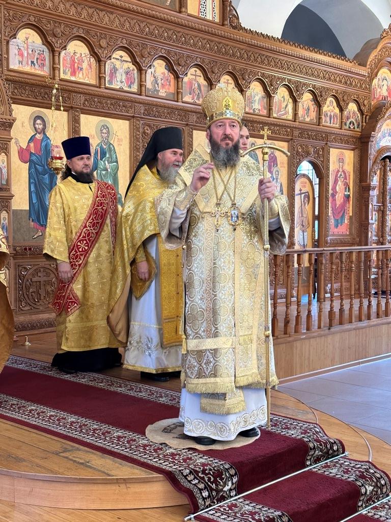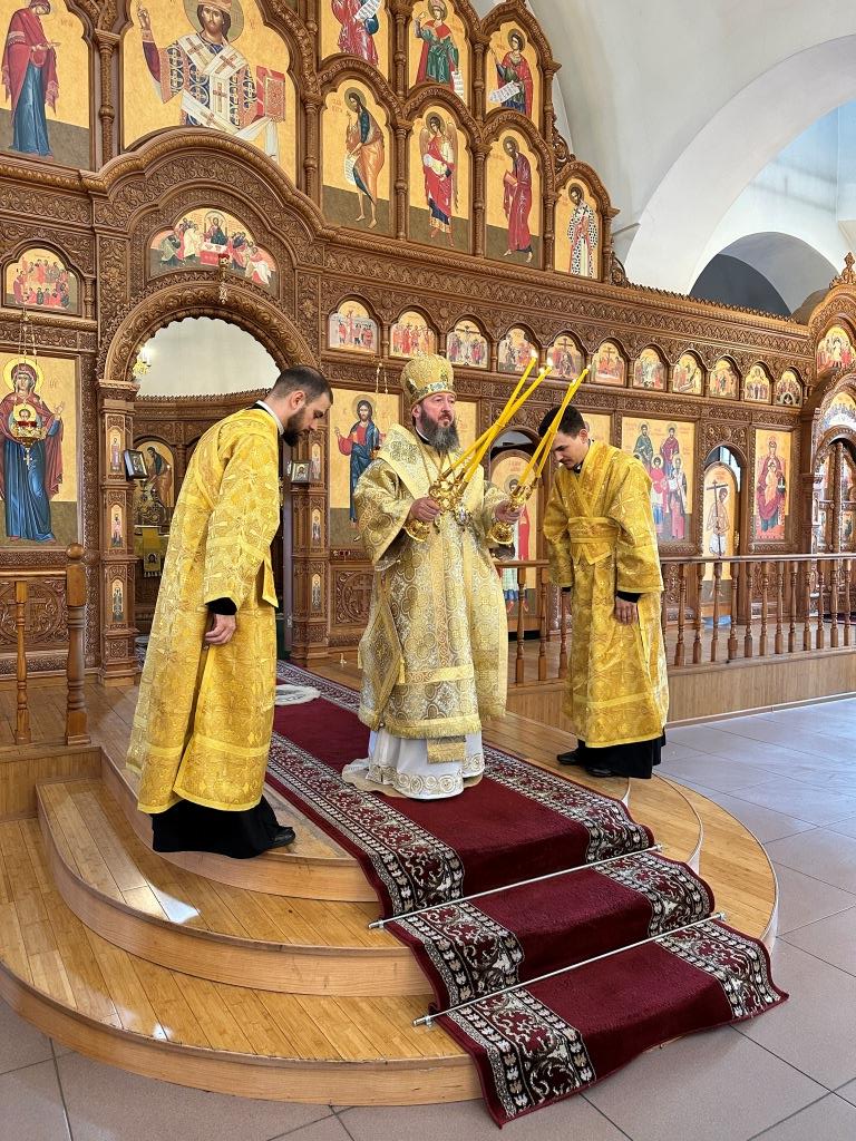 После заамвонной молитвы было совершено славление святым преподобномученикам Серафиму и Феогносту, затем Высокопреосвященнейший Владыка Амфилохий вознес им молитву. В завершение праздничной Евхаристии архиепископ Амфилохий поздравил всех прихожан с праздником и обратился к пастве со словами святительского поучения.