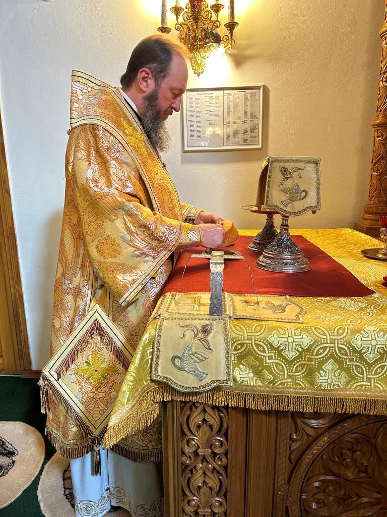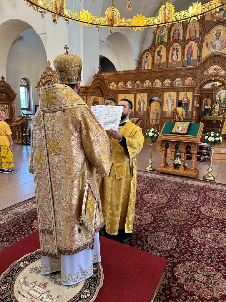 Владыке архиепископу сослужили: ключарь кафедрального собора иеромонах Никодим (Авдеев), клирик собора иерей Константин Дьяков, секретарь епархии диакон Илия Кван, протодиакон Андрей Дудник. Песнопения Божественной Литургии исполнял хор Андреевского собора под управлением регента Н. Романцовой. За богослужением молились прихожане кафедрального собора, насельники Свято-Троицкого мужского монастыря города Усть-Каменогорска, и сотрудники епархиального управления. Перед причастием мирян проповедовал священник Константин Дьяков.