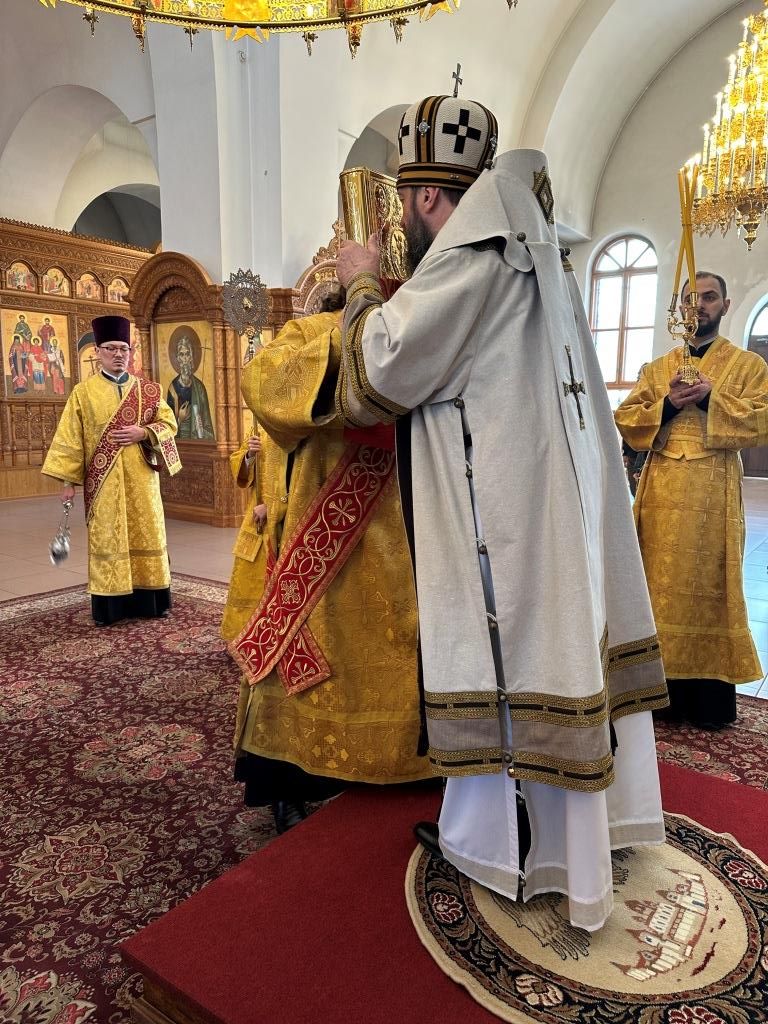Высокопреосвященнейший архиепископ Усть-Каменогорский и Семипалатинский Амфилохий возглавил служение Божественной Литургии святителя Иоанна Златоуста в Андреевском кафедральном соборе города Усть-Каменогорска.