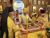 После проповеди Высокопреосвященнейший Архипастырь призвал Божие благословение на всех молящихся и окропил прихожан святой водой.