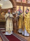 Песнопения Божественной Литургии и Недели святых отец исполнял хор Андреевского собора под управлением регента Н. Романцовой. Перед причастием мирян проповедовал священник Роман Подрезов. За воскресным богослужением молились и причащались Святых Христовых Таин насельники Свято-Троицкого мужского монастыря города Усть-Каменогорска, прихожане кафедрального собора, сотрудники епархиального управления и воспитанники Центральной воскресной школы.