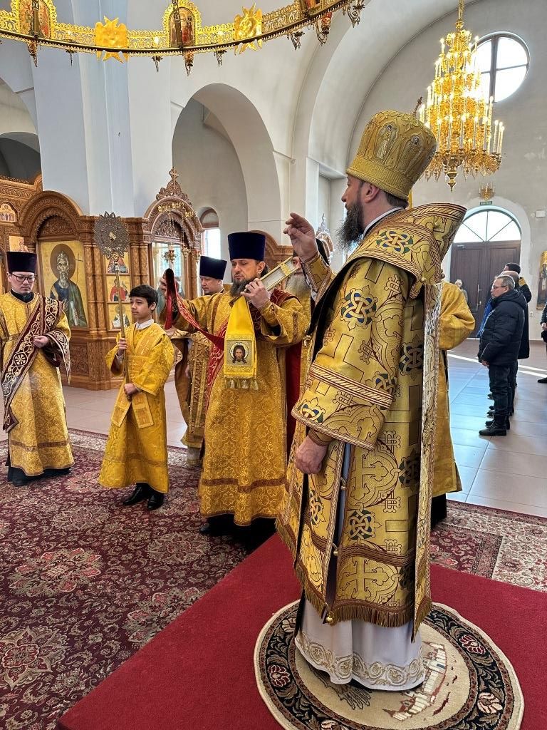 Песнопения Божественной Литургии и Прощеного воскресения исполнял хор кафедрального собора под управлением регента Н. Романцовой. Проповедь перед причастием мирян произнёс священник Виталий Адаменков. За богослужением молились и причащались Святых Христовых Таин насельники Свято-Троицкого мужского монастыря города Усть-Каменогорска, сотрудники епархиального управления, прихожане кафедрального собора, преподаватели и воспитанники Центральной воскресной школы.
