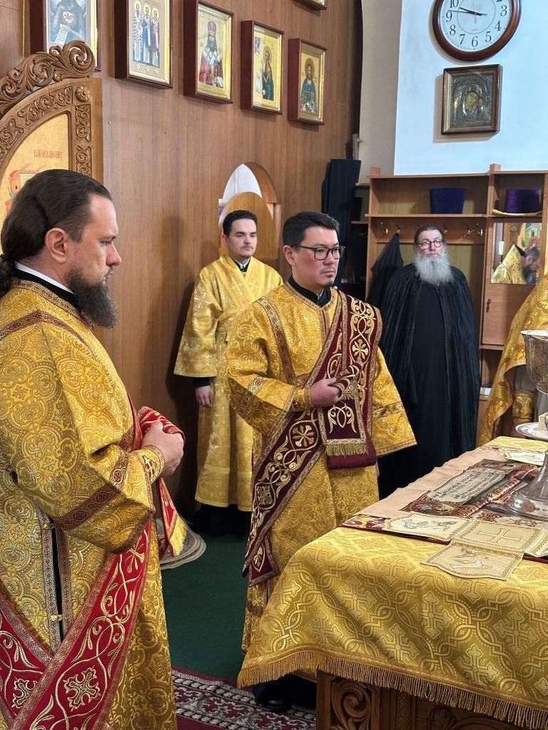 Высокопреосвященнейший архиепископ Усть-Каменогорский и Семипалатинский Амфилохий совершил Божественную Литургию святителя Иоанна Златоуста в Свято-Андреевском кафедральном соборе столицы Восточного Казахстана. Владыке архиепископу сослужили: ключарь кафедрального собора иеромонах Никодим (Авдеев), клирик собора иерей Роман Подрезов, протодиакон Андрей Дудник, секретарь епархии диакон Илия Кван.