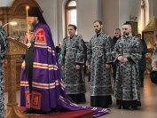 За вечерним богослужением молились клирики Андреевского собора, сотрудники епархиального управления, насельники Свято-Троицкого мужского монастыря города Усть-Каменогорска и прихожане. Песнопения повечерия и Великого канона исполнял хор собора под управлением регента Н Романцовой.