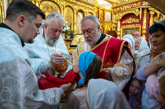 По запричастном стихе протоиерей Александр Суворов огласил послание Святейшего Патриарха Московского и всея Руси Кирилла в связи с празднованием 1700-летия I Вселенского собора.