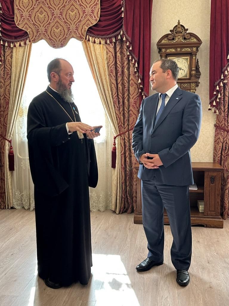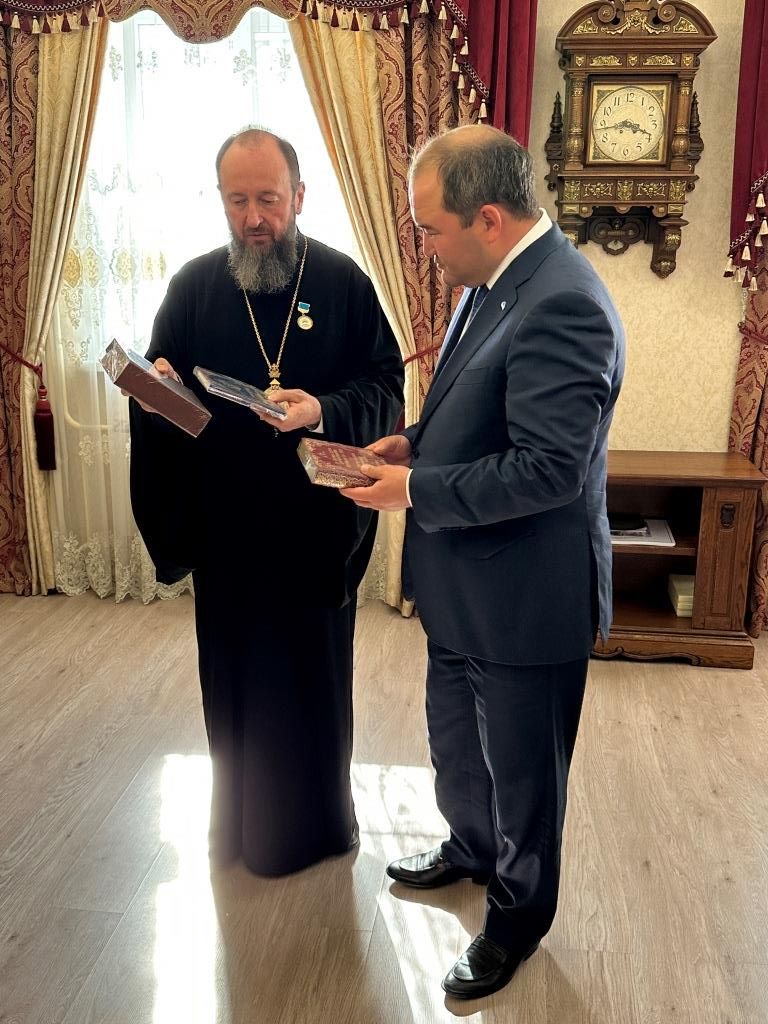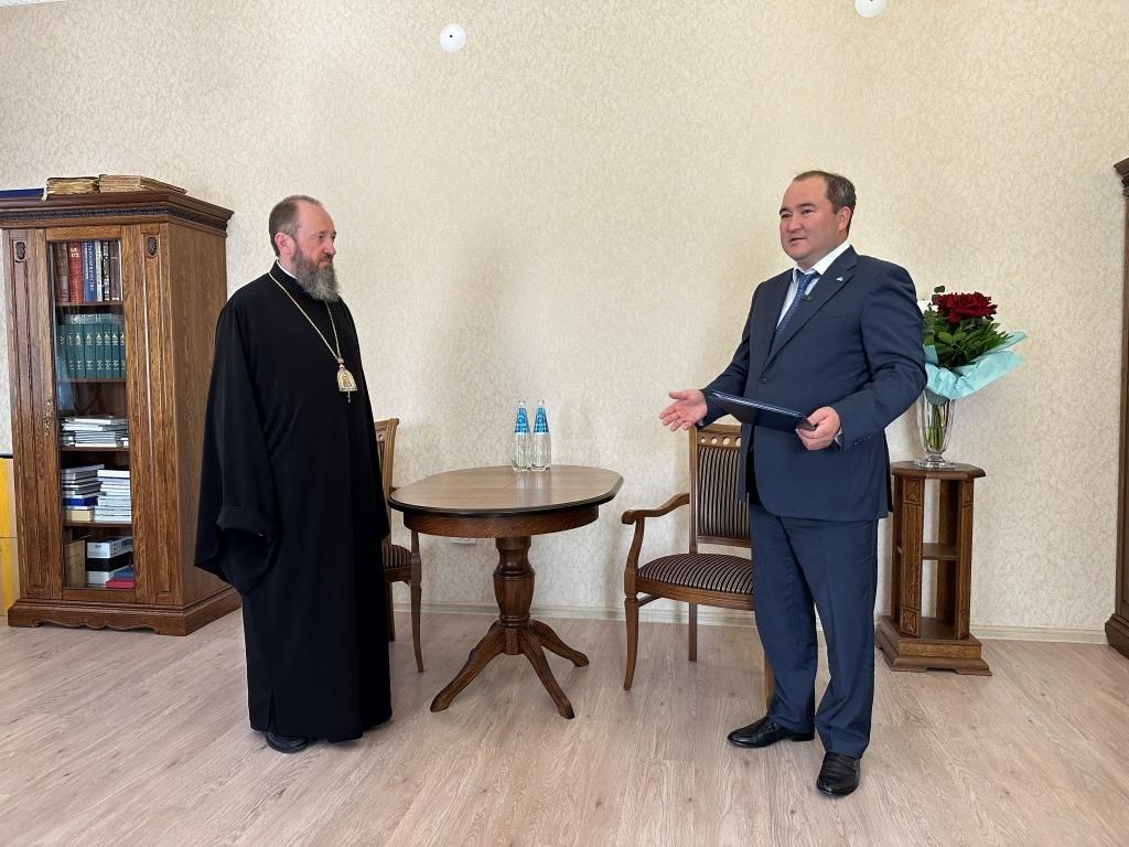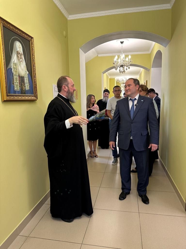 В ответном слове архиепископ Амфилохий выразил искреннюю благодарность за оказанную честь и внимание со стороны городских властей. В знак признательности Владыка преподнёс акиму памятный дар – специальное издание Священного Писания: Евангелие от Матфея и книгу Притчей Соломоновых, переведённое на государственный язык.