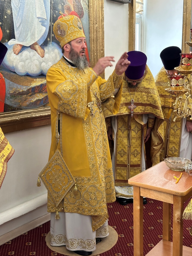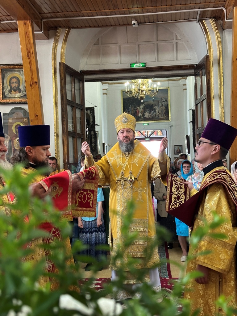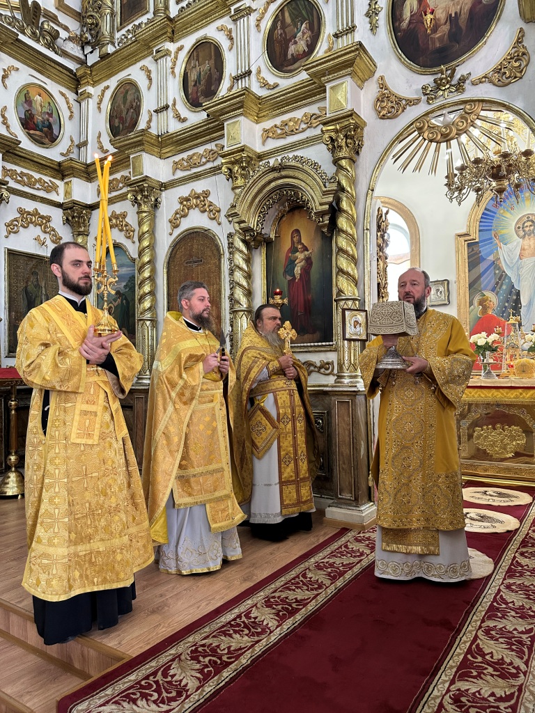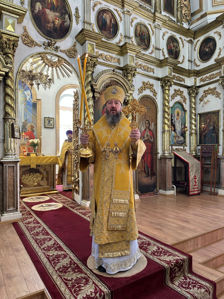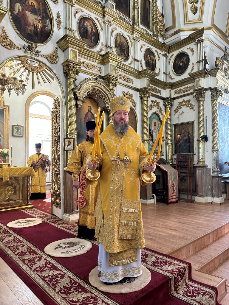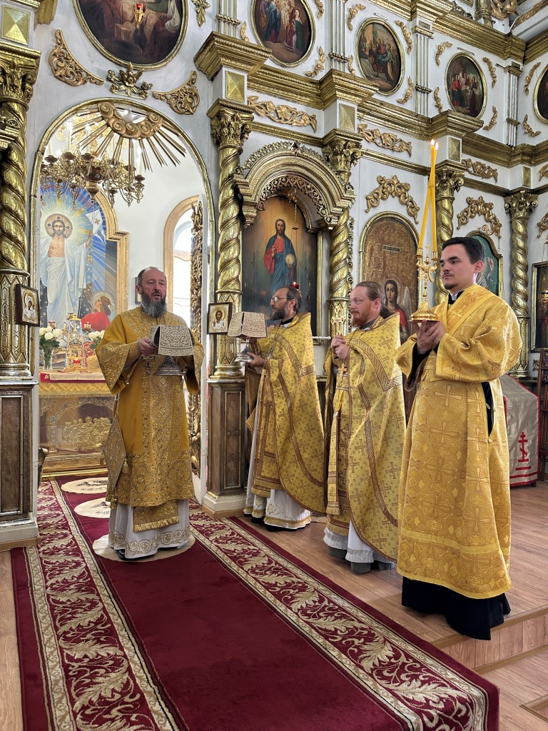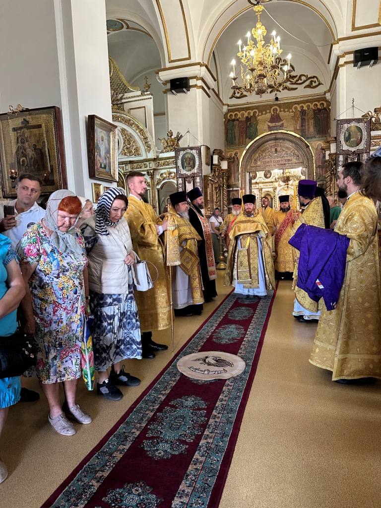 За богослужением молились прихожане Воскресенского собора и паломники. Песнопения Божественной Литургии исполнял хор Воскресенского храма, регент Ю. Хохрякова. После окончания Божественной Литургии архиепископ Амфилохий обратился к собравшимся со словами проповеди: