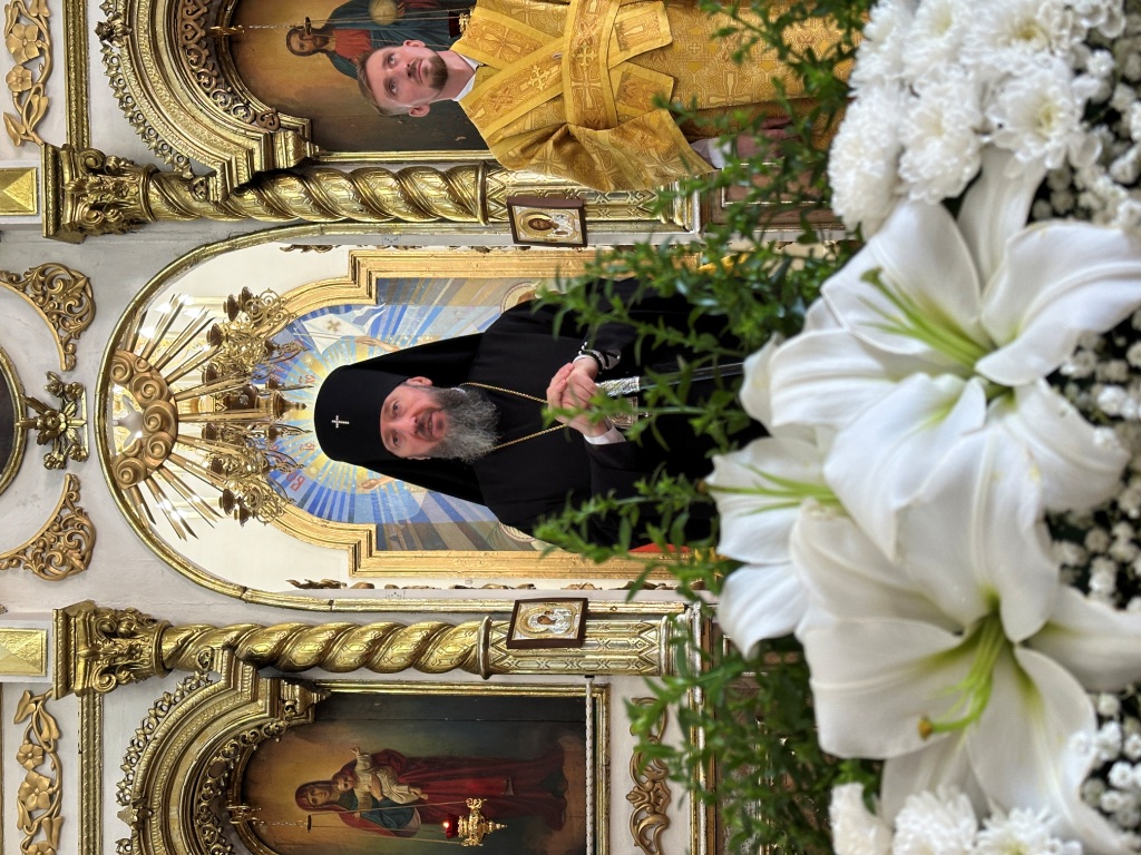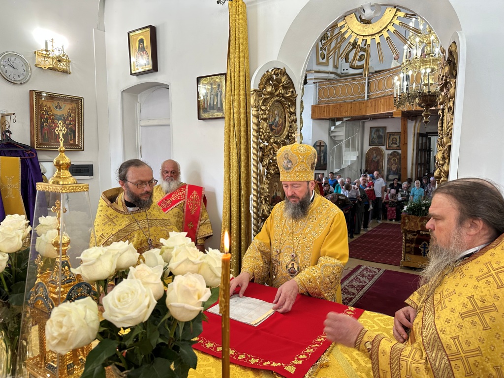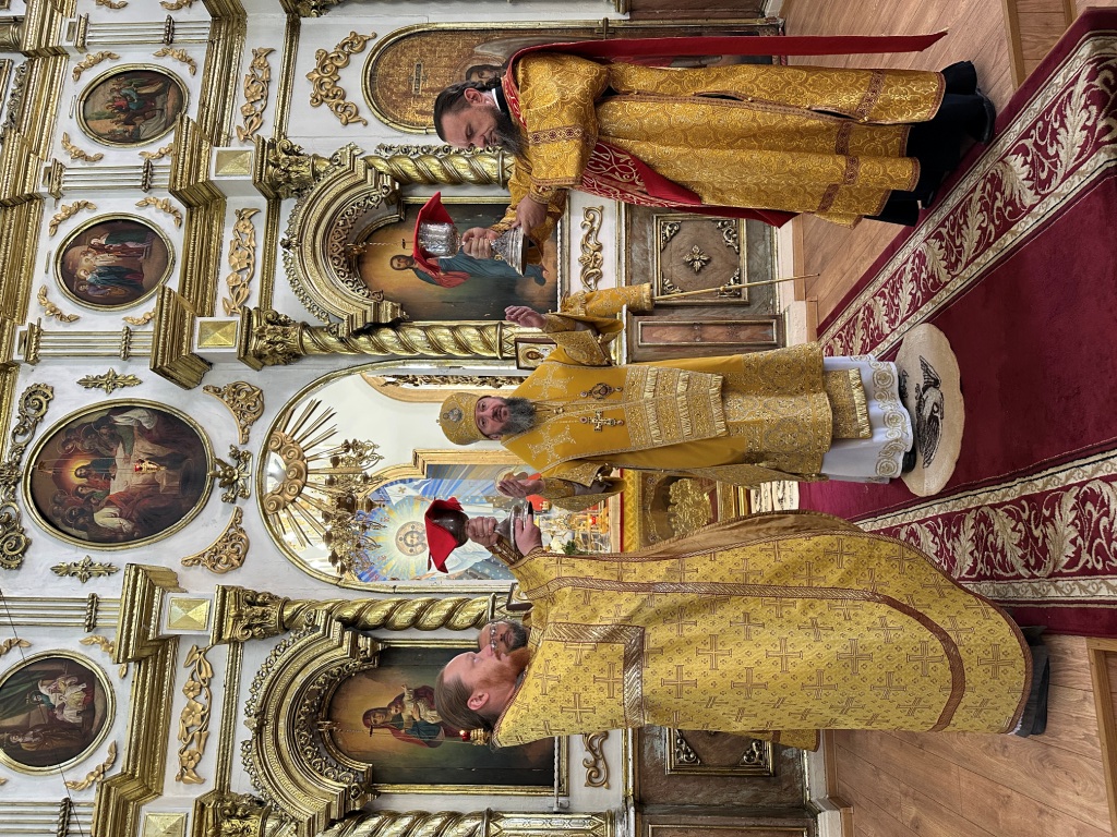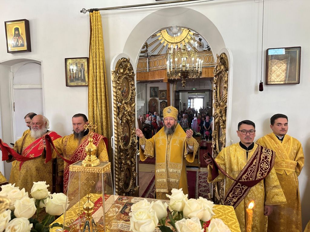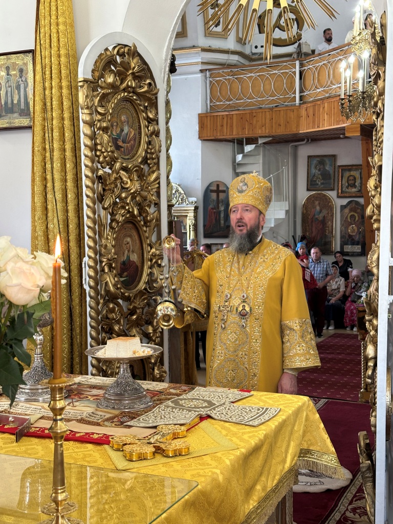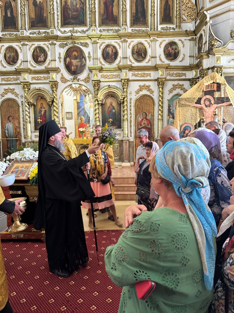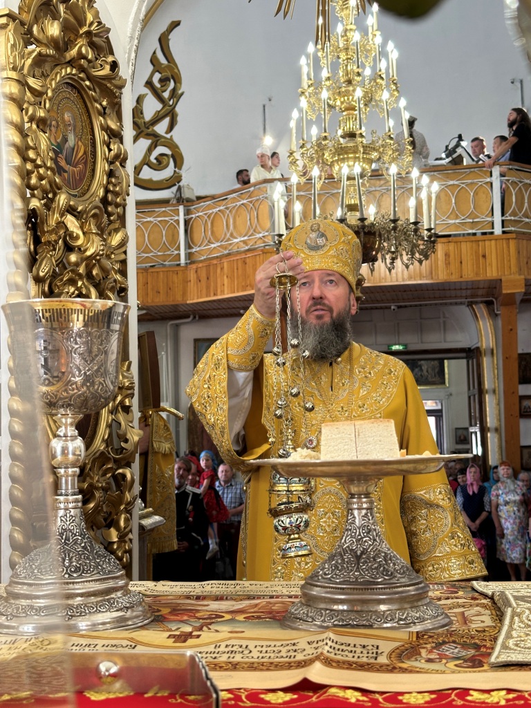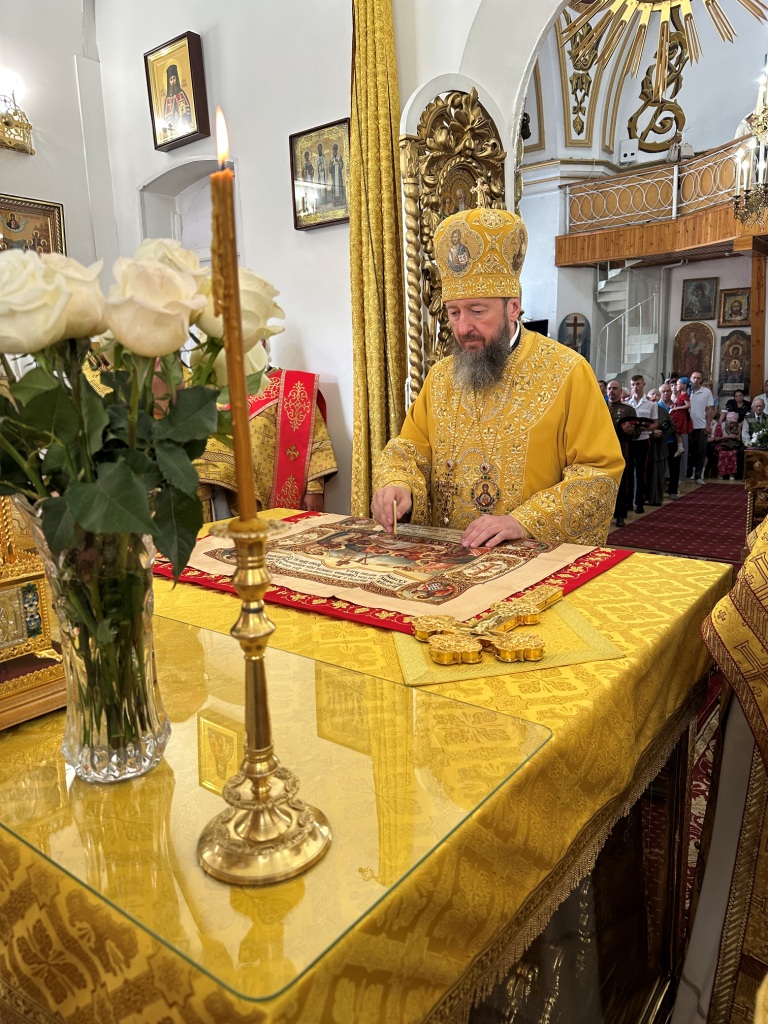 За богослужением молились прихожане Воскресенского собора и паломники. Песнопения Божественной Литургии исполнял хор Воскресенского храма, регент Ю. Хохрякова. После окончания Божественной Литургии архиепископ Амфилохий обратился к собравшимся со словами проповеди:
