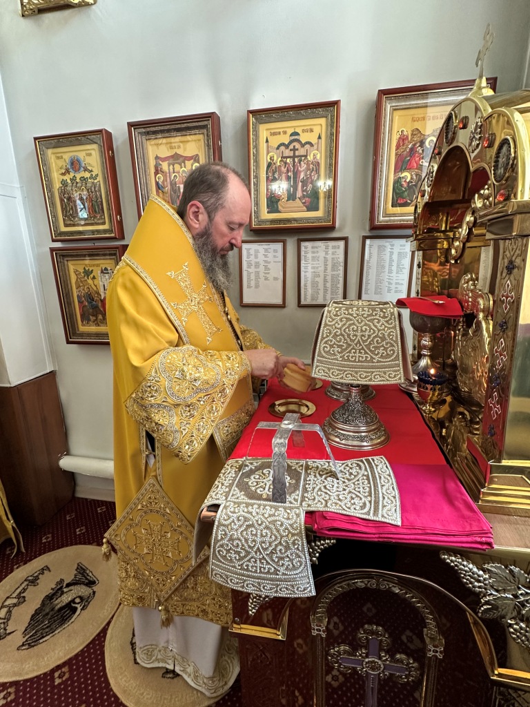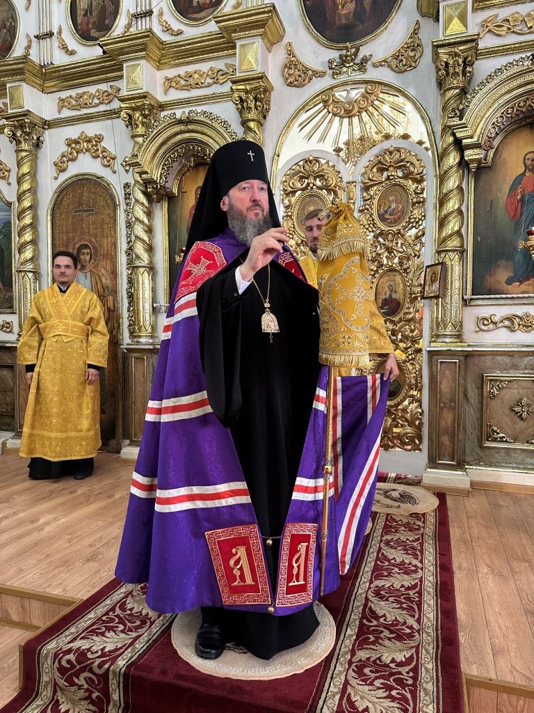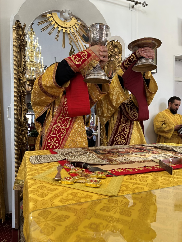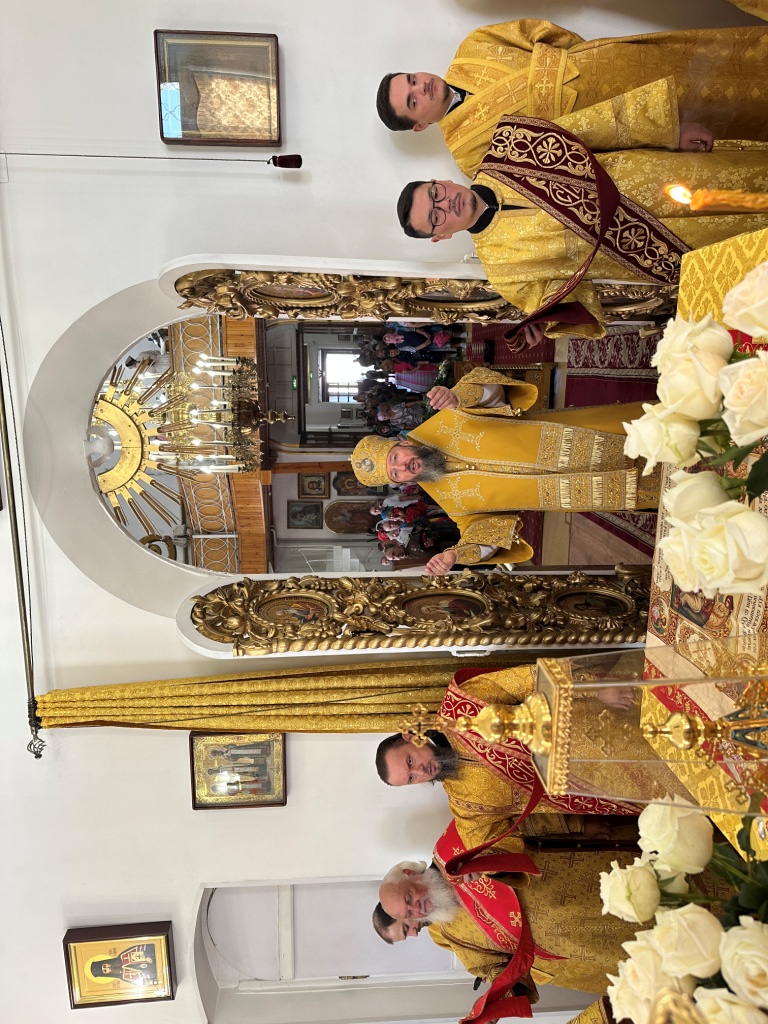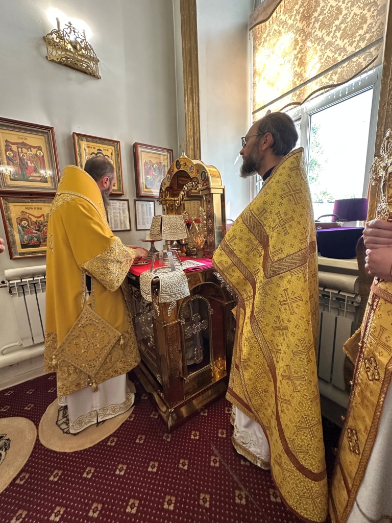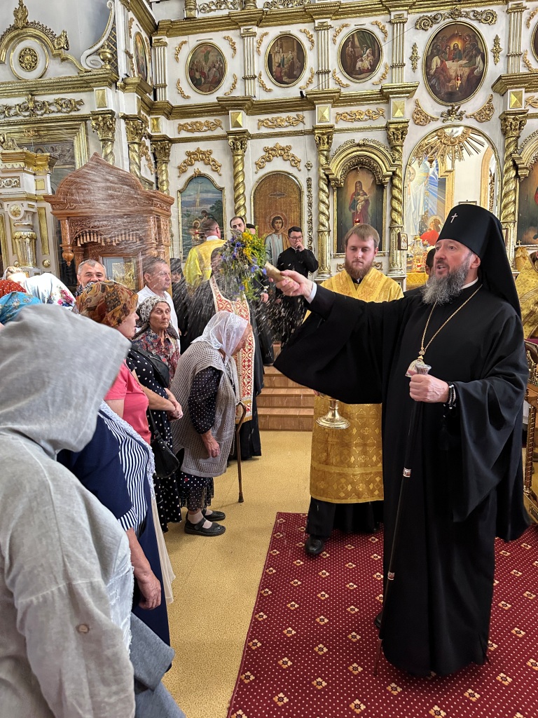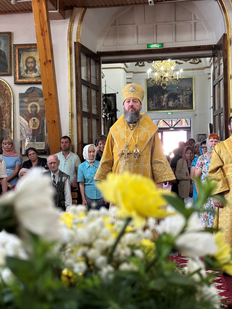 За богослужением молились прихожане Воскресенского собора и паломники. Песнопения Божественной Литургии исполнял хор Воскресенского храма, регент Ю. Хохрякова. После окончания Божественной Литургии архиепископ Амфилохий обратился к собравшимся со словами проповеди: