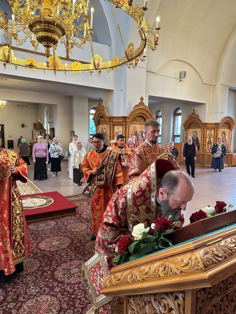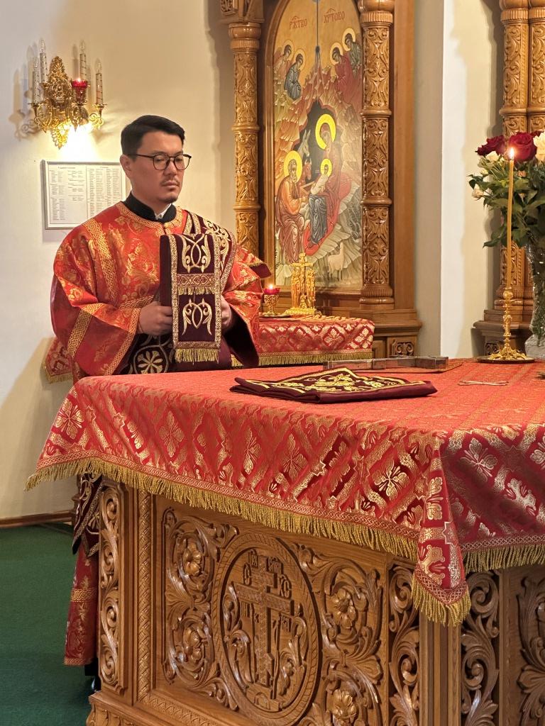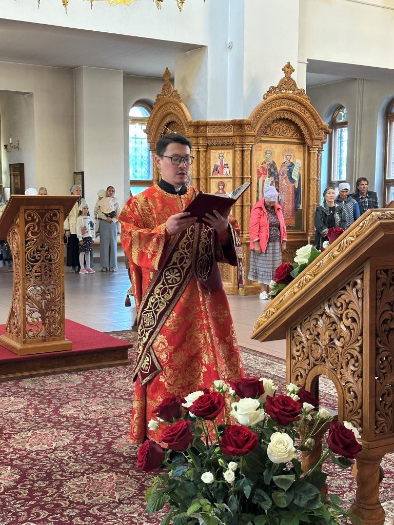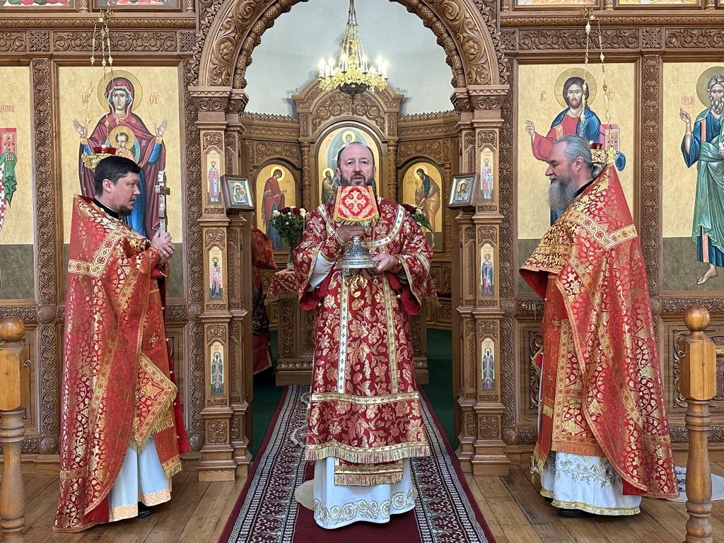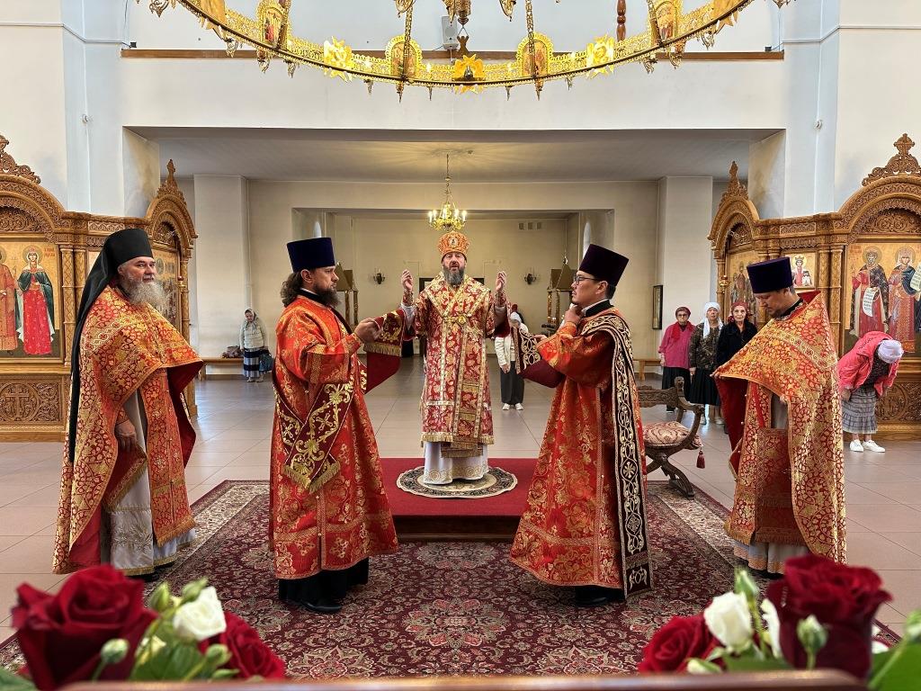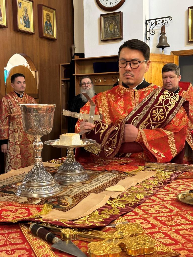 За богослужением молились прихожане кафедрального собора, насельники Свято-Троицкого мужского монастыря города Усть-Каменогорска, сотрудники епархиального управления. Богослужебные песнопения исполнял хор Андреевского собора под управлением регента Н. Романцовой. На запричастном стихе проповедовал иерей Роман Подрезов.