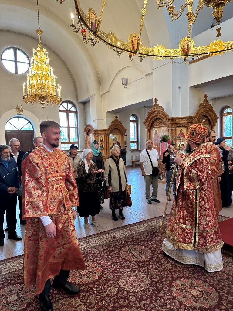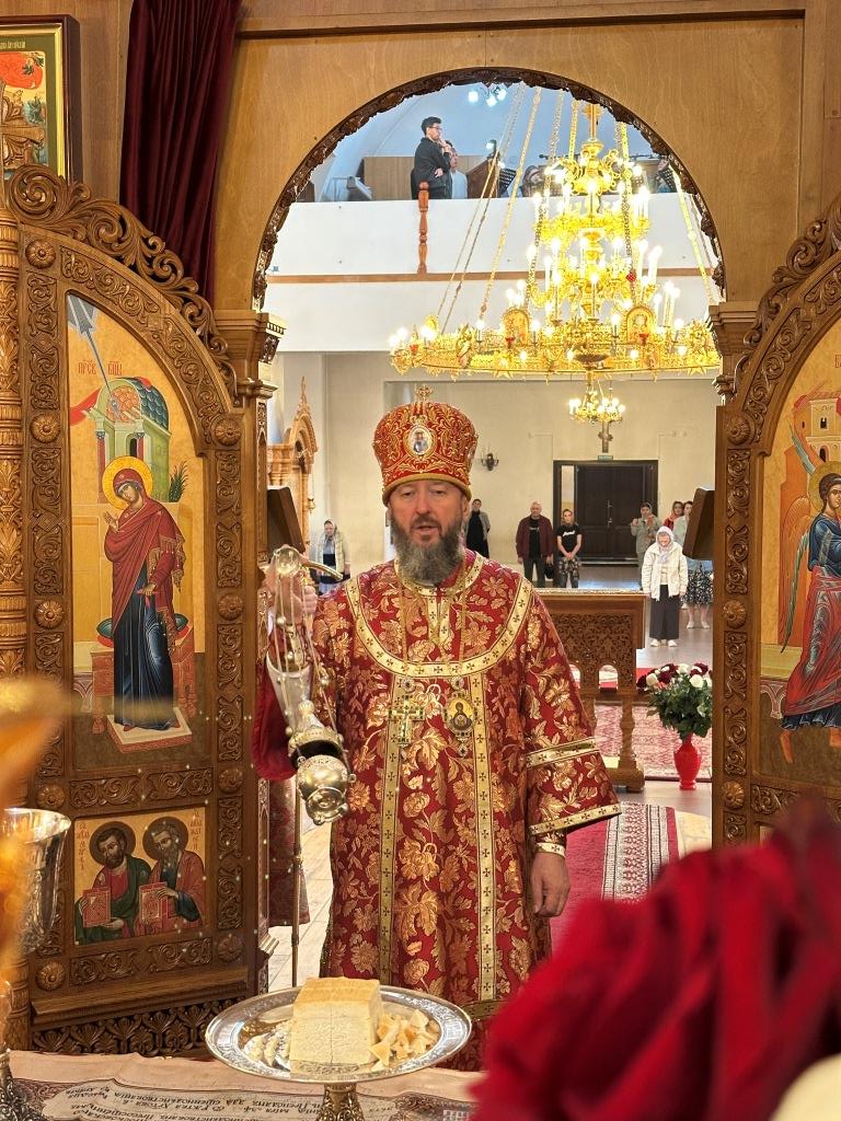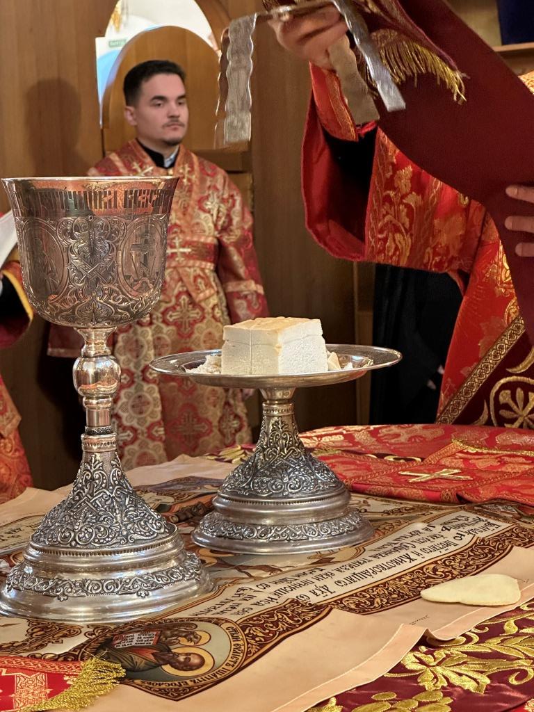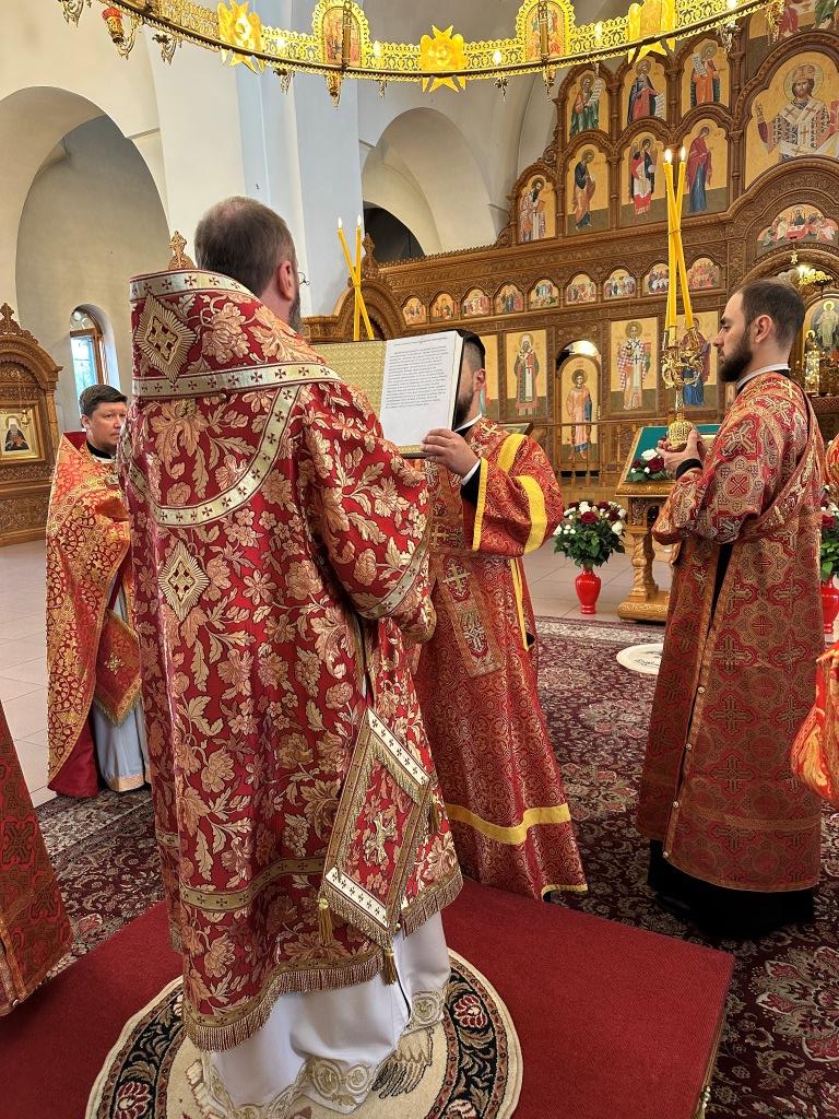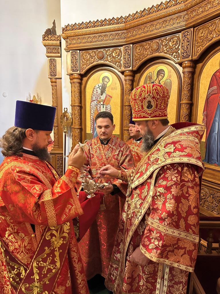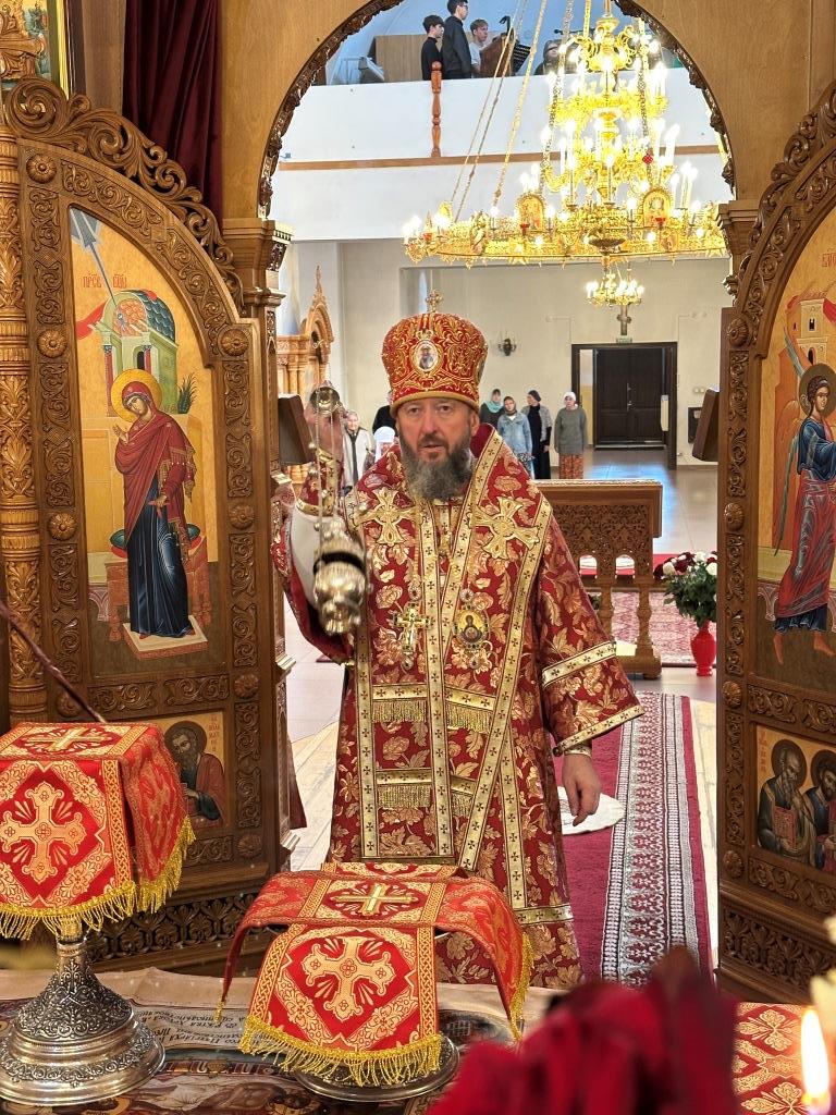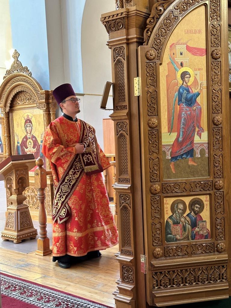 За богослужением молились прихожане кафедрального собора, насельники Свято-Троицкого мужского монастыря города Усть-Каменогорска, сотрудники епархиального управления. Богослужебные песнопения исполнял хор Андреевского собора под управлением регента Н. Романцовой. На запричастном стихе проповедовал иерей Роман Подрезов.