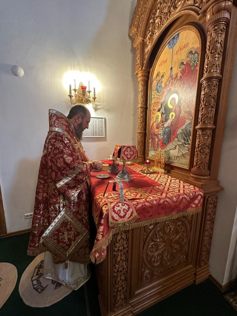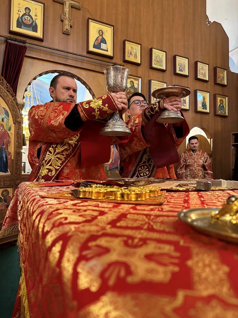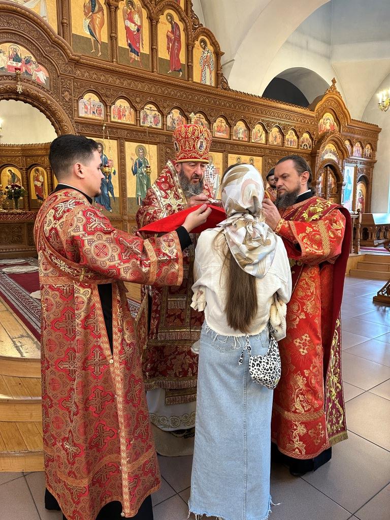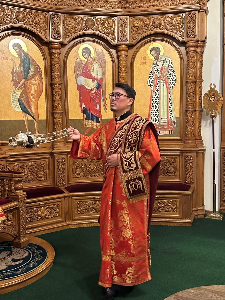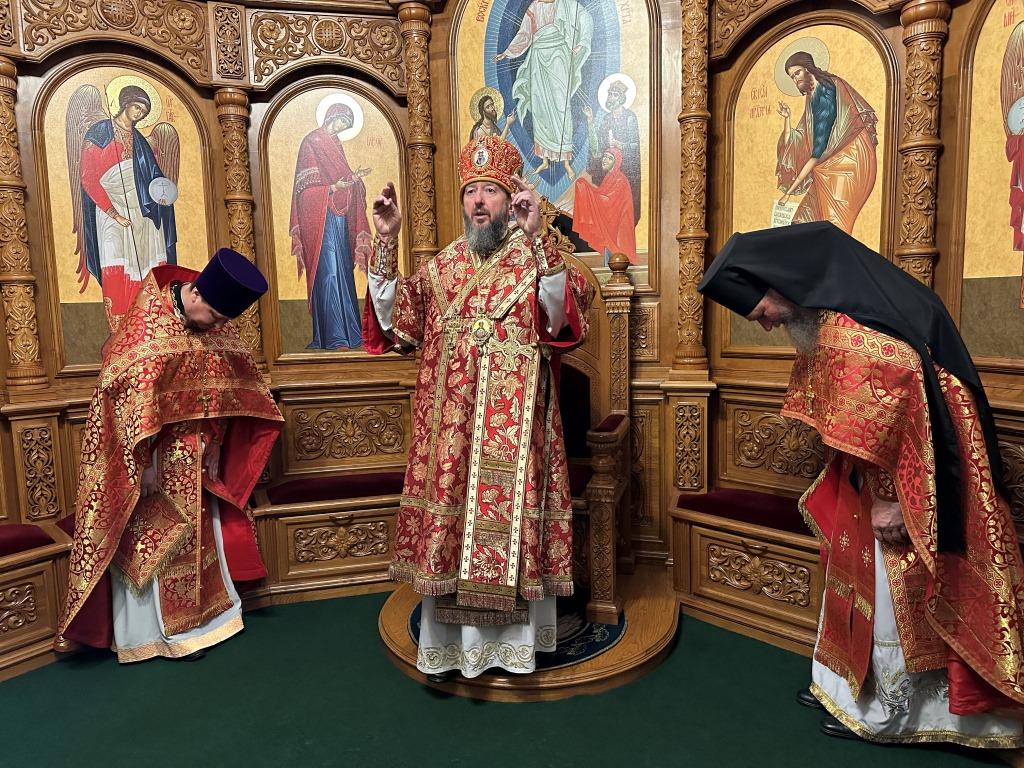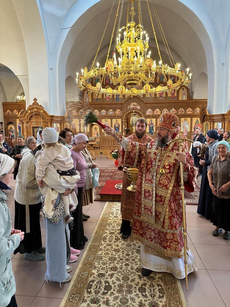 За богослужением молились прихожане кафедрального собора, насельники Свято-Троицкого мужского монастыря города Усть-Каменогорска, сотрудники епархиального управления. Богослужебные песнопения исполнял хор Андреевского собора под управлением регента Н. Романцовой. На запричастном стихе проповедовал иерей Роман Подрезов.