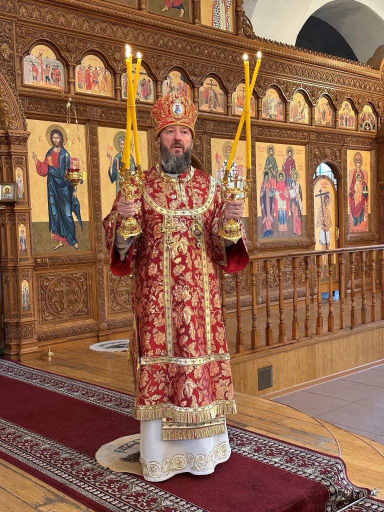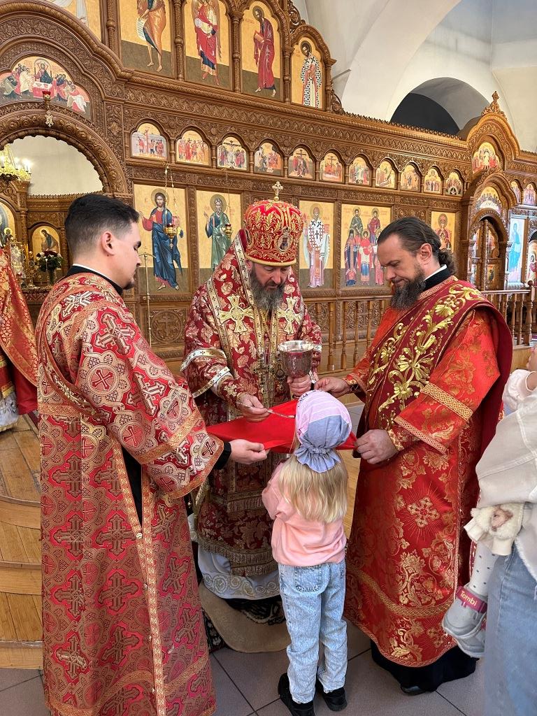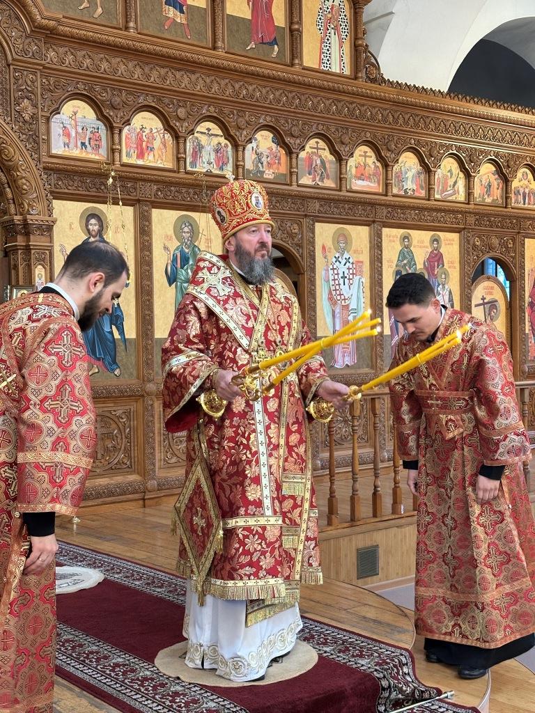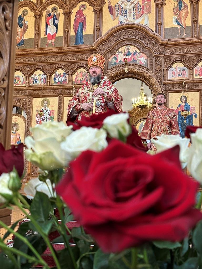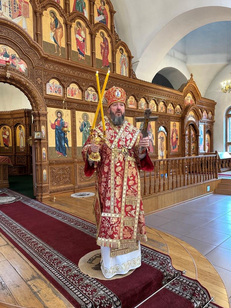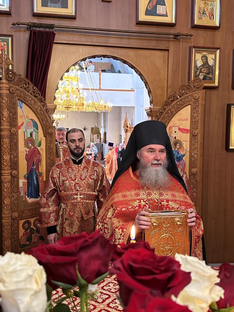 После заамвонной молитвы было совершено славление великомученику Пантелеимону перед его почитаемой старинной иконой. По окончании богослужения архиепископ Амфилохий поздравил прихожан и причастников с принятием Святых Христовых Таин и обратился к народу Божию с Архипастырским словом.