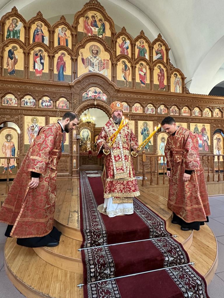Архиепископ Усть-Каменогорский и Семипалатинский Амфилохий возглавил служение Божественной Литургии святителя Иоанна Златоуста в Андреевском кафедральном соборе города Усть-Каменогорска. Архипастырю сослужили: ключарь кафедрального собора иеромонах Никодим (Авдеев), клирик собора иерей Роман Подрезов, протодиакон Андрей Дудник, секретарь епархии диакон Илия Кван.
