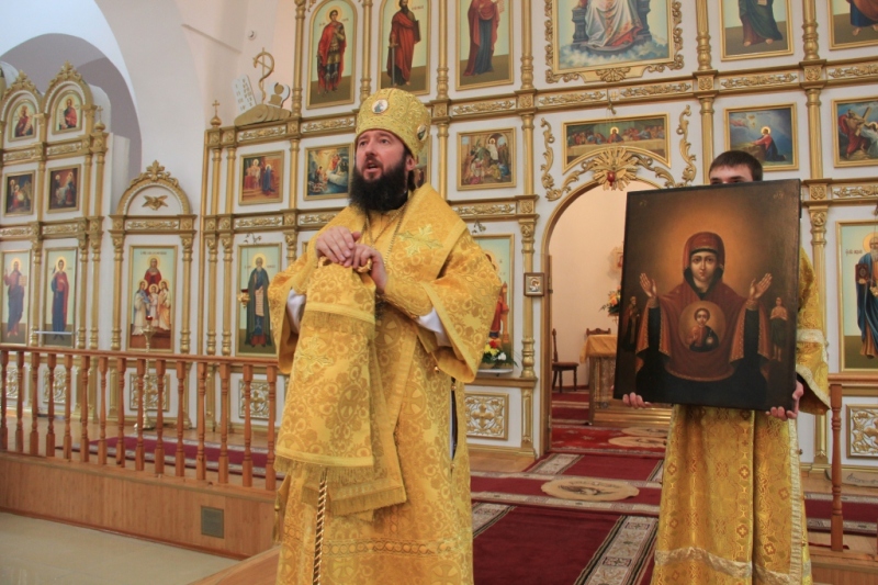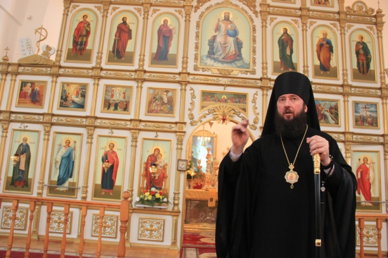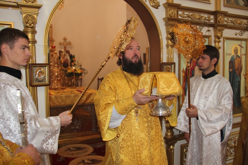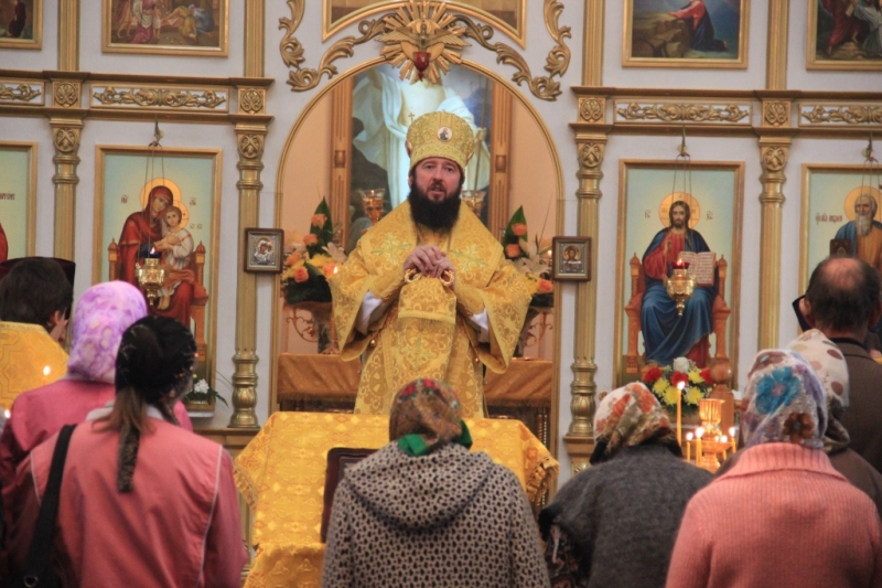 После окончания богослужения Преосвященный Владыка обратился к собравшимся с проповедью: «Словом мира и любви приветствую вас, всечестные отцы, братья и сестры. Сегодня мы молились в этом святом храме и слышали Слово Божие. Господь всех нас призывает изменить свою жизнь, изменить не внешне, но внутренне, изменить так, чтобы жизнь наша была похожа на единое общение с Богом, на столько, на сколько мы в силах сделать это. И если нет в нас сил человеческих, то Господь дарует нам силы духовные, ибо то, что не возможно человеку, возможно Богу. И мы, немощные и смиренные Его рабы, знаем это, но не всегда стараемся исполнять Его заповеди, не всегда стараемся быть добрее, чище, не всегда бываем милосердны. То время, которое мы могли бы посвятить Богу и делам милосердия, мы часто посвящаем самим себе. Человек, который посвящает свою жизнь Богу и исполняет Его святые заповеди, чувствует Его приближение, чувствует Его участие в жизни, Его руку помощи и отеческую заботу. Очень многие из нас с вами испытали на себе помощь Божию, испытали заступничество Пресвятой Владычицы Богородицы, испытали радость общения с Богом и Его святыми. Но, наверное, никто так не испытывал эту радость, как человек всецело отдающий себя воле Божией, у которого нет ничего своего и нет ничего для себя, который живет только лишь для Бога, для Церкви Божией, для спасения своей души, делает добро единому от малых сих, а значит делает для Бога. Господь Бог не нуждается в наших подаяниях, в них нуждаются наши ближние, которые часто находятся в нищете, голоде и холоде. Единая цель, к которой призывает нас Господь – это чистая, искренняя любовь к Богу и ближнему. А человек порой творит очень много дел, но далече отстоит от Бога. Про таких людей Сам Господь говорит: устами своими чтут Меня, а сердце их далеко от Меня отстоит. И если ты, человек, согрешил, то покайся, прими на себя хитон смирения и ризу, которая будет сковывать твои желания и похоти, будет давать возможность творить Божье дело, ибо всякий человек, облеченный в хитон правды будет следовать по пути, который уготовал Ему Господь… », - сказал Преосвященный Владыка в своей проповеди.