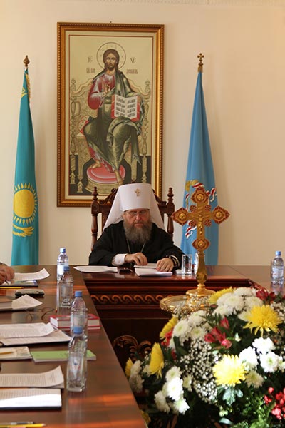 Предстоятель Православной Церкви Казахстана выступил с докладом о предстоящем подписании Соглашение о сотрудничестве между Митрополичьим Округом Русской Православной Церкви в Республике Казахстан и Агентством Республики Казахстан по делам религий. Архипастыри утвердили текст Меморандума.