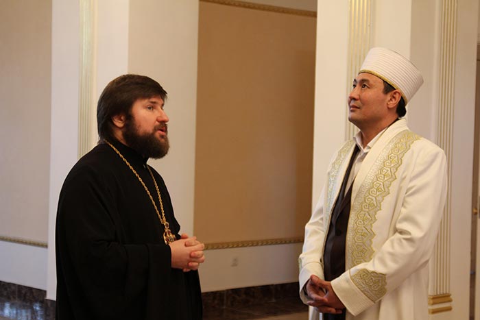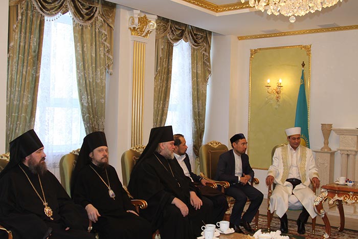 Во встрече также приняли участие: со стороны Митрополичьего Округа – благочинный храмов Астаны архимандрит Сергий (Карамышев), руководитель Информационного отдела Митрополичьего Округа протоиерей Евгений Иванов; со стороны Духовного Управления мусульман Казахстана - первый заместитель Верховного муфтия, Главный имам мечети «Хазрет Султан» в Астане Серикбай кажы Ораз и Главный имам Астаны, главный имам мечети «Нұр Астана» Отпенов Наурызбай Таганович.