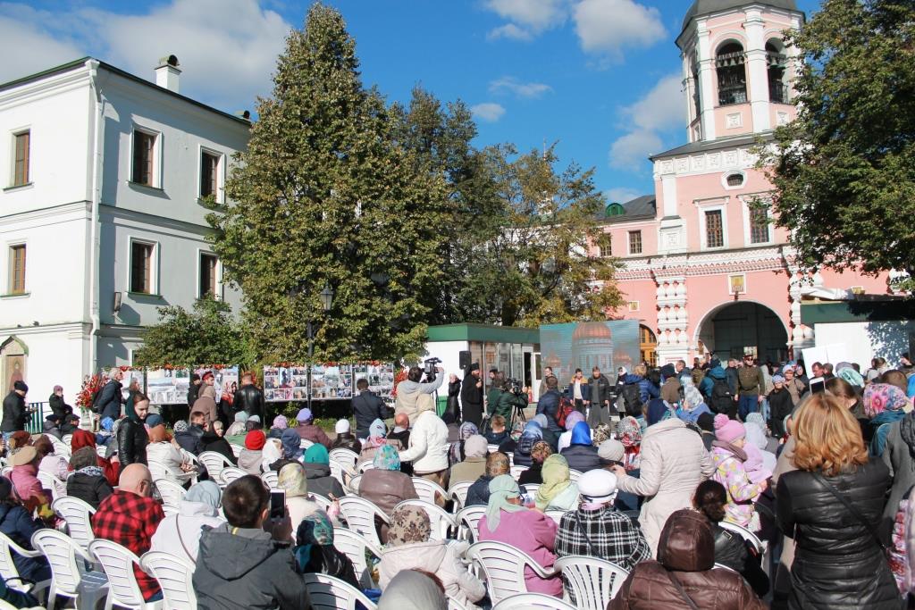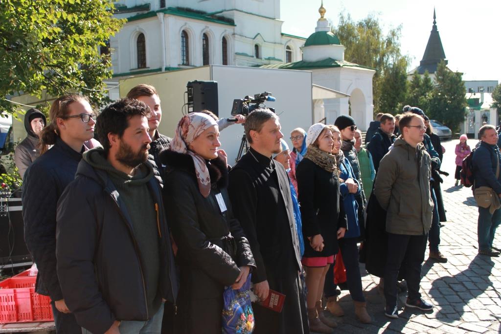 В завершающий день фестивальной программы, после окончания Божественной Литургии, наместник Свято-Даниловского ставропигиального монастыря архимандрит Алексий (Поликарпов) приветствовал собравшихся и представил вниманию участников и гостей фотовыставку, посвященную Даниловским колоколам.