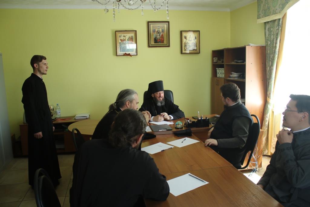 Члены комиссии изучили личное дело ставленника, ознакомились с его характеристикой и провели экзамен на знание основ Православной веры и церковных богослужений.