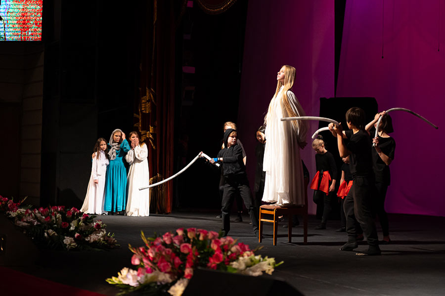 Театральную постановку, посвященную мученицам Вере, Надежде, Любови и Софии представили учащиеся детской театральной студии «Sats ComUnity» (руководитель – Заслуженный деятель Казахстана – Евгений Дубовик).