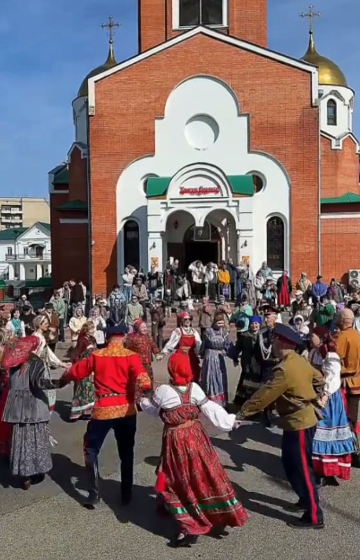 По окончании Пасхального молебна на специально подготовленной сцене выступили творческие коллективы города. В исполнении хоров прозвучали пасхальные песнопения, народные ансамбли порадовали зрителей светлыми песнями и задорными танцами. В ходе народных гуляний все желающие смогли отведать блюда различных кухонь и принять участие в народных забавах.